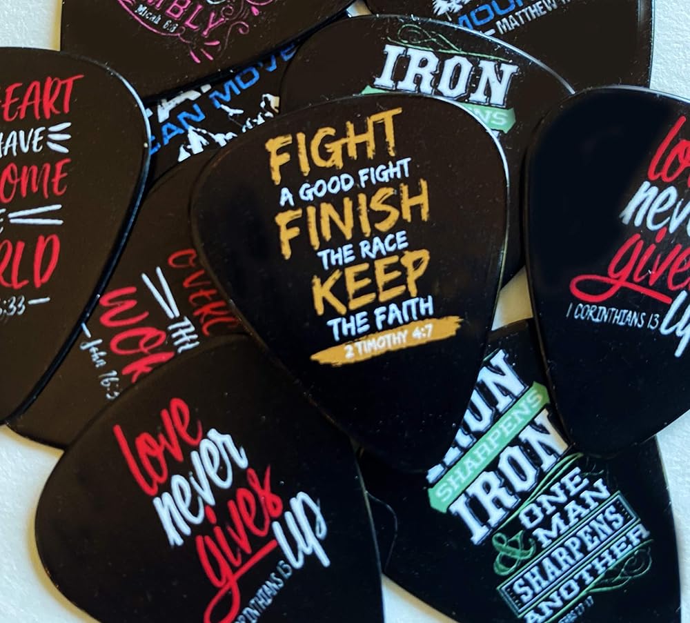 12 اقتباسًا من الكتاب المقدس المسيحي، اختيارات جيتار عالية الجودة. 6 تصاميم مختلفة.