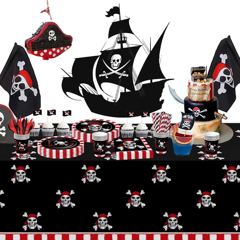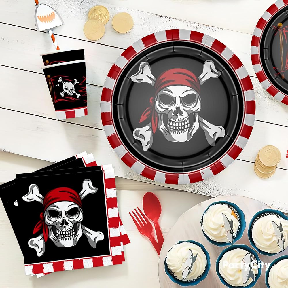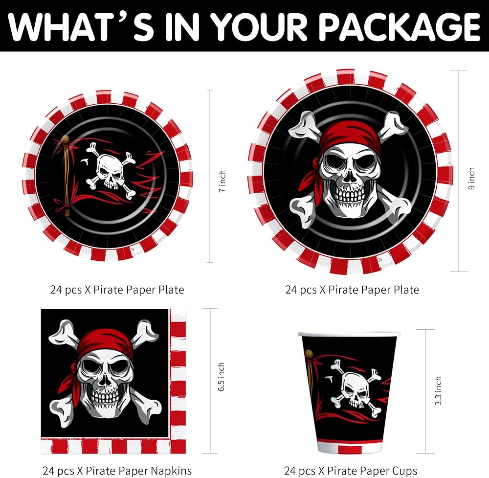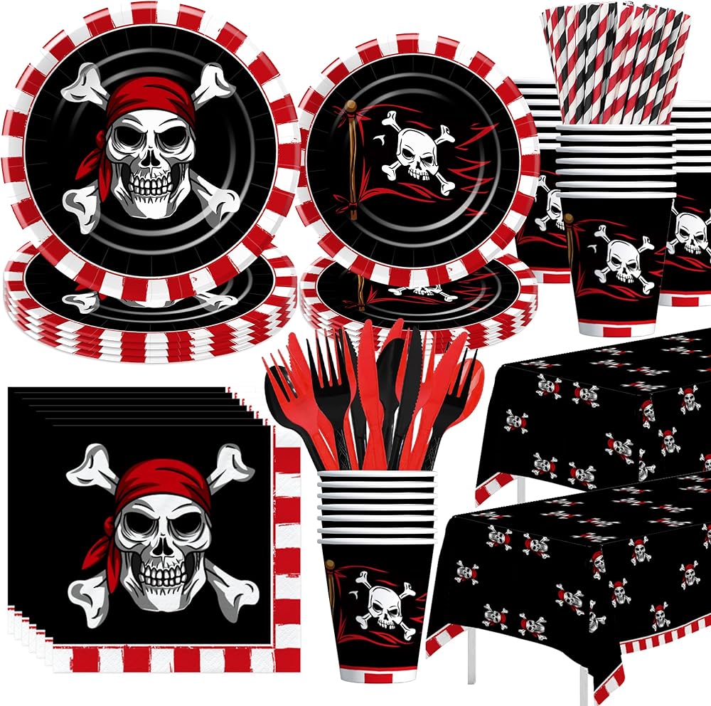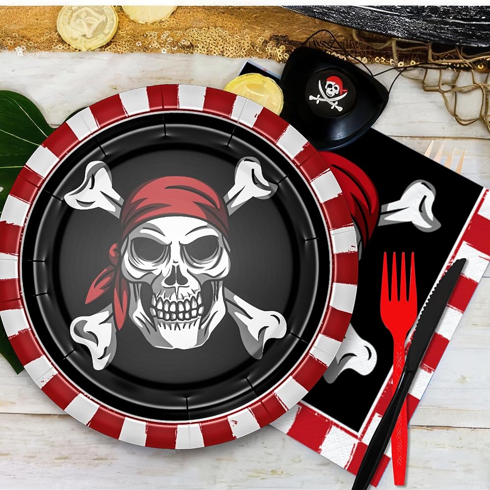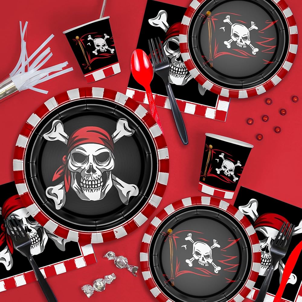 【Applicable Occasions】These pirate party tableware is suitable for various occasions, including a Halloween skull theme party, a pirate-themed birthday celebration, a pirate movie night, a Caribbean theme party, a nautical pirate ship party, a pirate treasure map birthday party, baby showers, or just a fun night in with friends