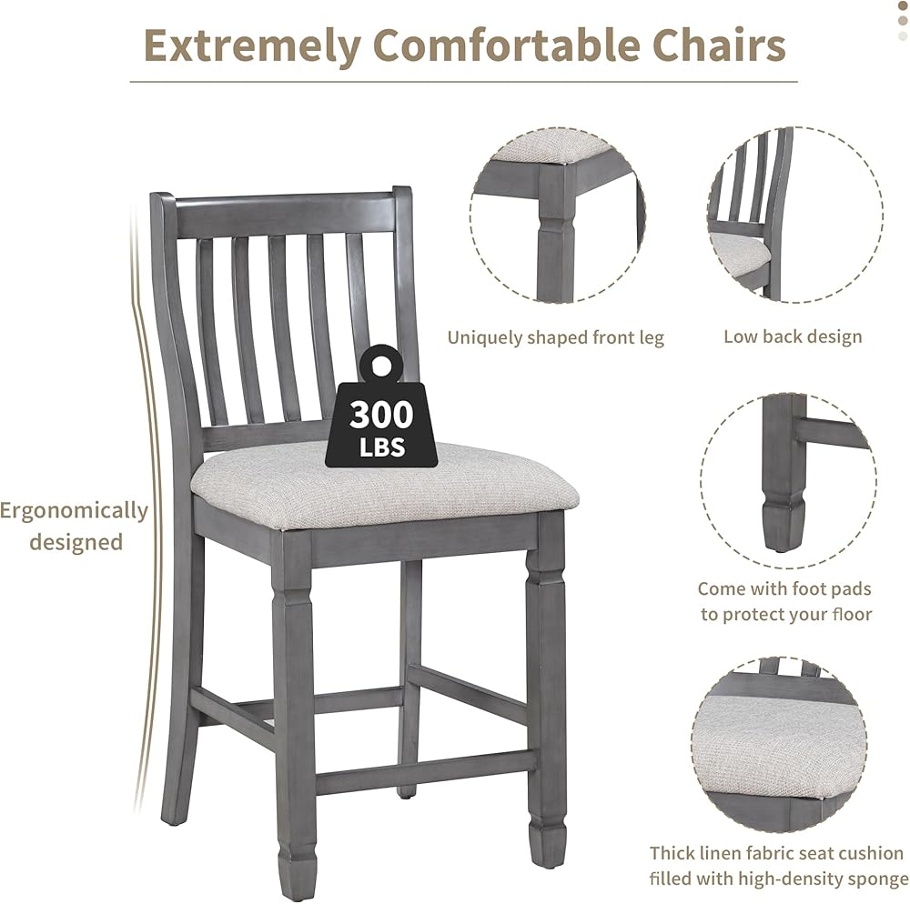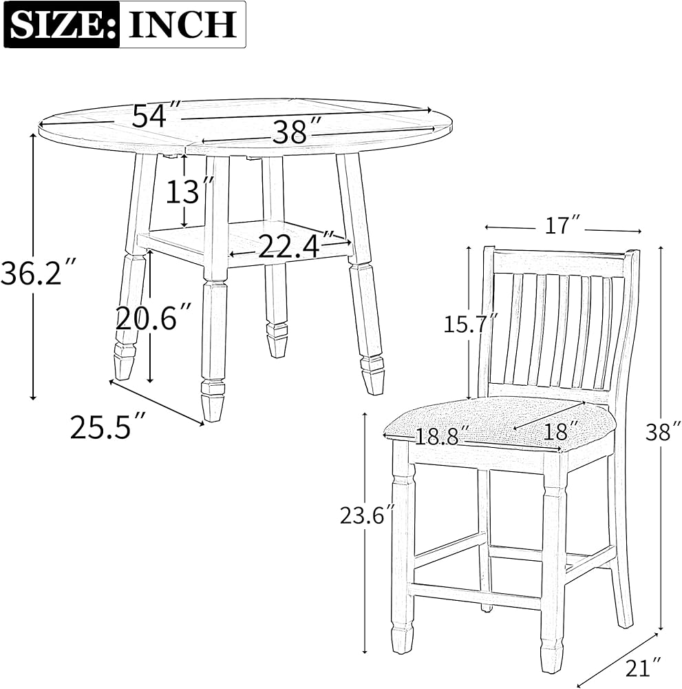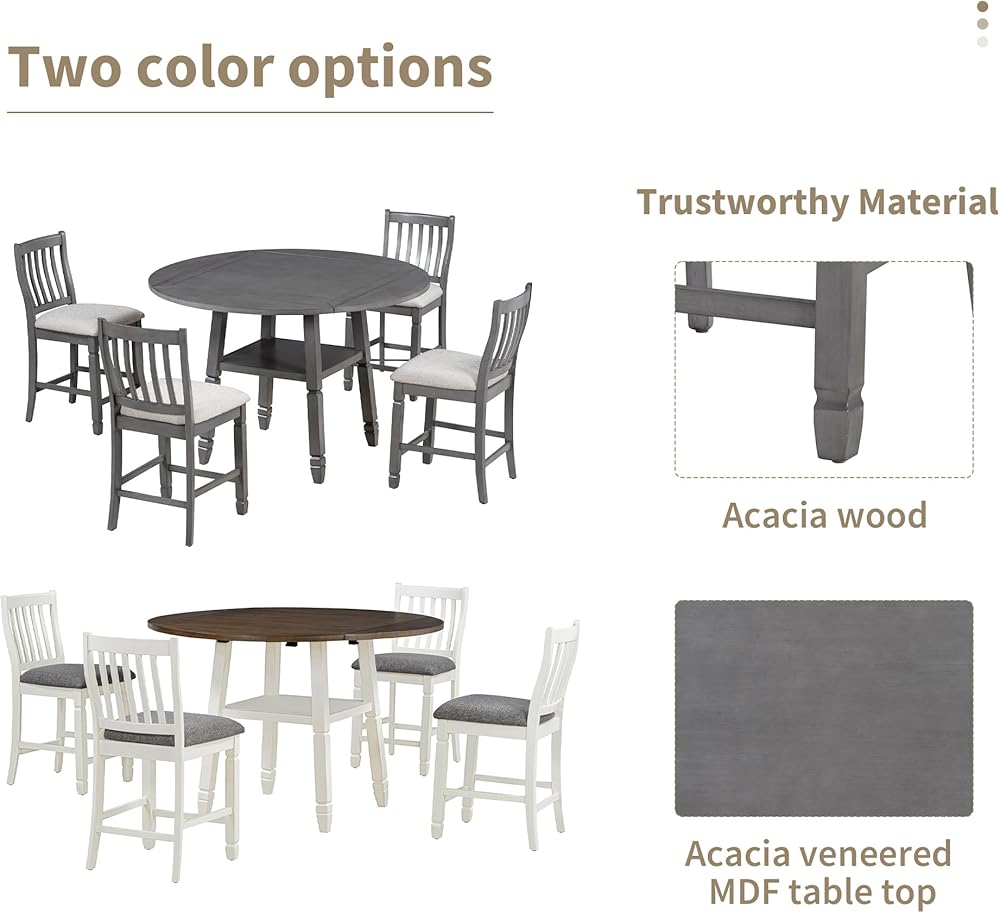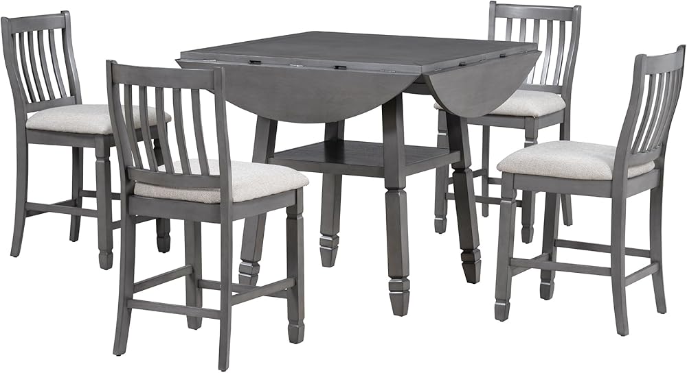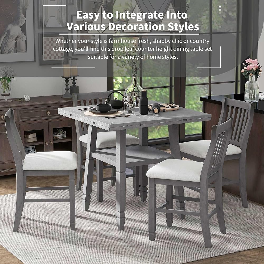 Dining Table Set for 4 - Dining Table Set in 2 Table Sizes with 4 Folding Leaves and 4 Upholstered Chairs. Whether your style is farmhouse fresh, shabby chic or country cottage, you'll find this folding leaves counter height dining table set suitable for a variety of home styles. Suitable for a date and dinner with friends, or for a large family meal, it will be your friendly helper.