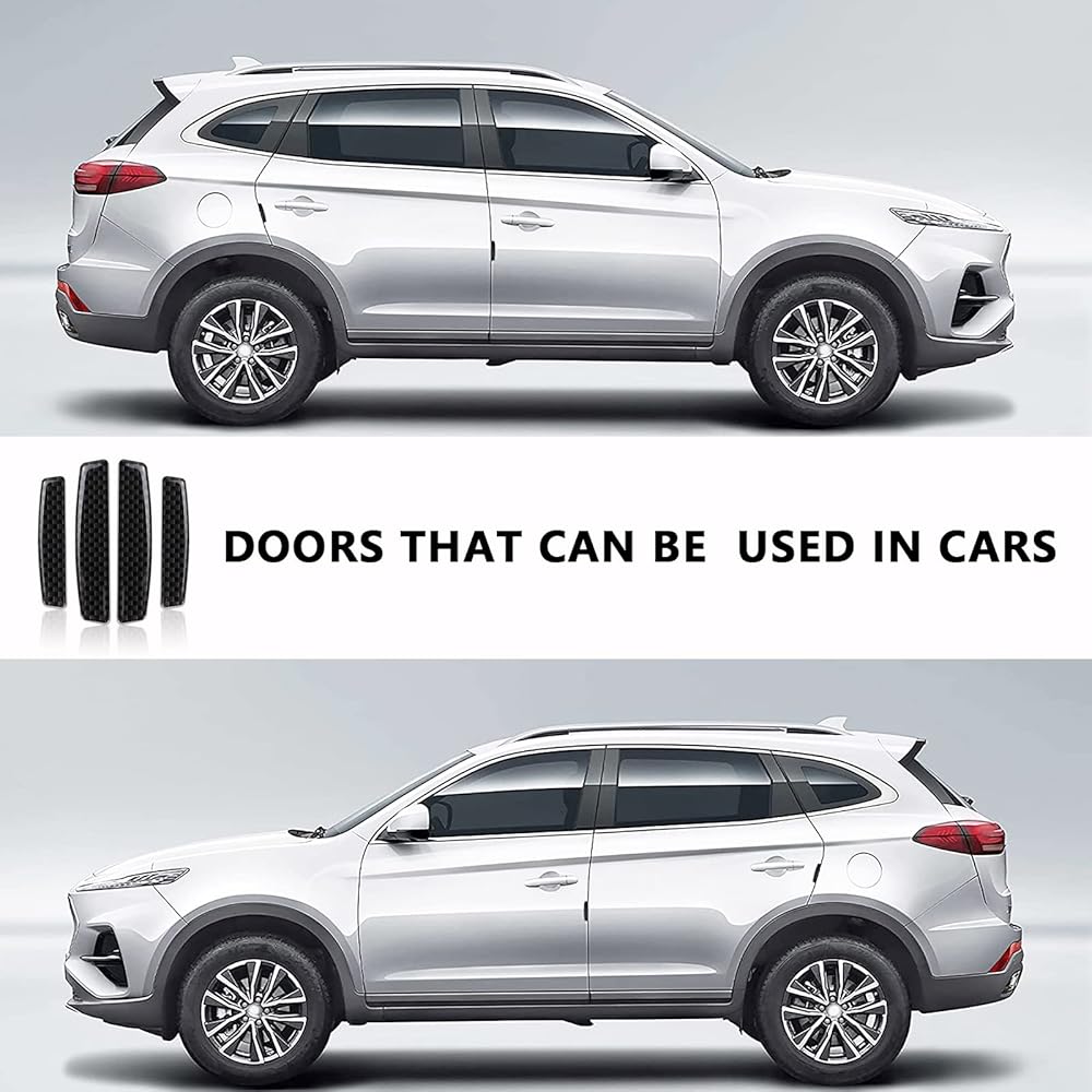 Package Include: 4 pieces of car side door edge protector trim stickers that universally fit front and rear doors of all vehicles, including: 2 pcs long guard stickers and 2 pcs shorter one.