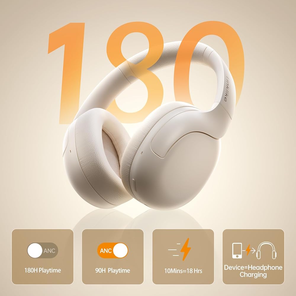 【وقت تشغيل فائق 100 ساعة وشحن سريع】تم تجهيز سماعات الرأس هذه فوق الأذن ببطارية مطورة، وشحن كامل لمدة 1.5 ساعة يوفر 100 ساعة من الاستماع المستمر في وضع الموسيقى، حتى في وضع ANC يوفر 63 ساعة من الاستماع المستمر، يتيح الشحن السريع لمدة 10 دقائق 10 ساعات من الاستماع. بالإضافة إلى ذلك، فهو مزود أيضًا بكابل من النوع c. عندما تنفد طاقة البطارية، يمكنك التبديل إلى الوضع السلكي، والضغط على زر التشغيل/الإيقاف مرتين ويمكن شحنه أثناء الاستماع إلى الموسيقى.