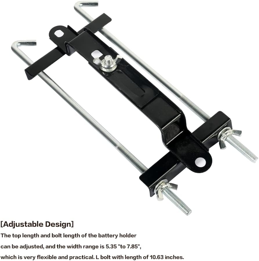 • [Adjustable Design] The top length and bolt length of the battery holder can be adjusted, and the width range is 5.35 "to 7.85", which is very flexible and practical. L bolt with length of 8 inches.