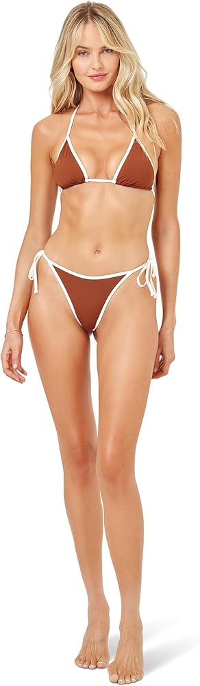 Get tied up in the Levy Bikini Bottom. Bitsy coverage and fun little side ties combine with pop-seam colorblocking for a fresh take on a signature fit.