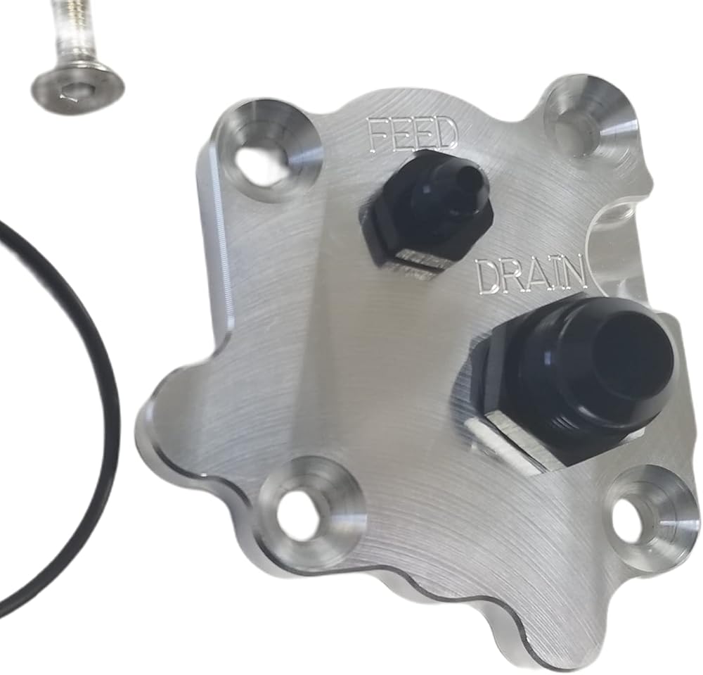This utilizes the oil supply and return that is on the engine block for the OEM Vacuum Pumps. If the engine did not come with the vacuum pump, make sure the Allen plugs are removed and the mating surface is clean and smooth before installation. Comes with O-ring Seals, Fittings and SS Mounting Bolts as pictured. Made from 6061-T6 Billet Aluminum.
