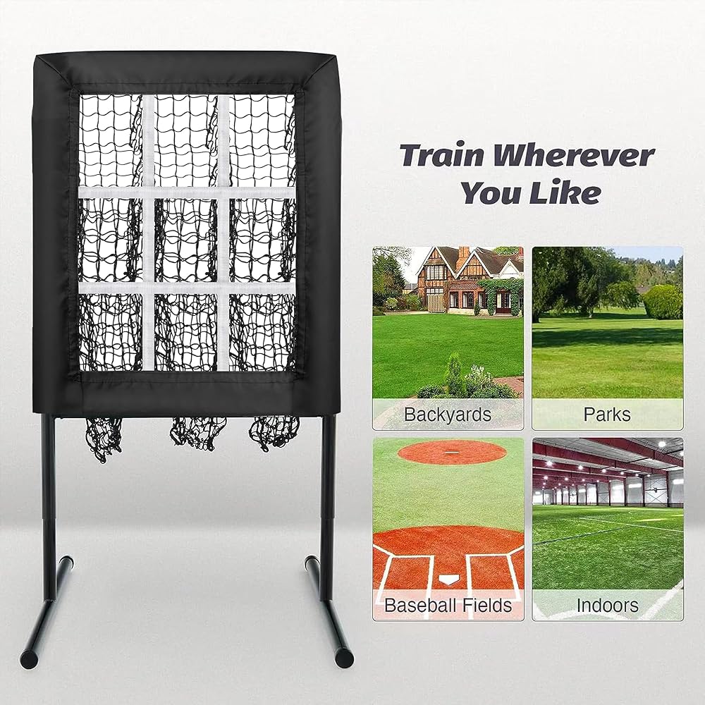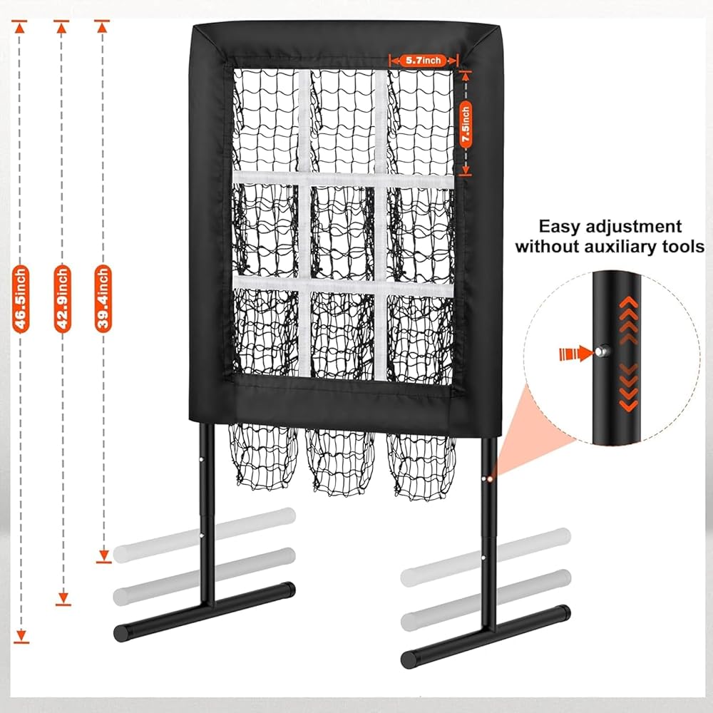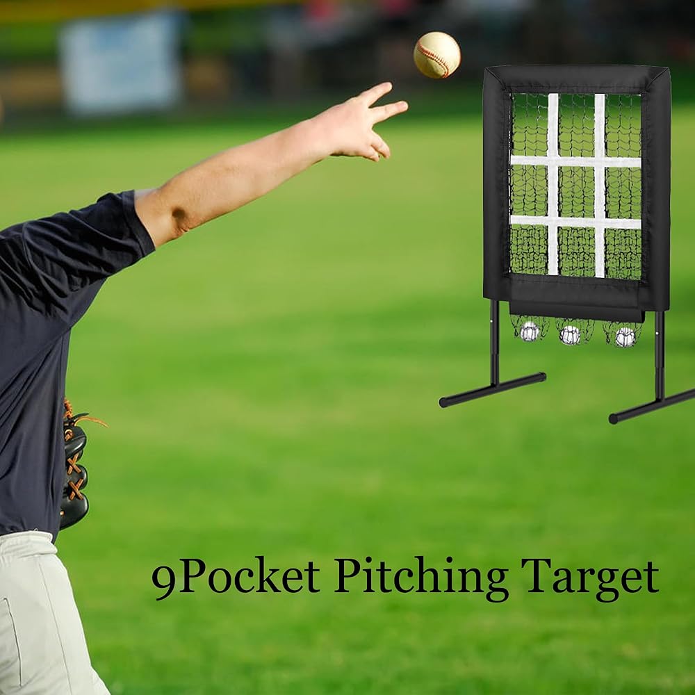 9 Pitching Targets - It can help you practice different types of pitches, such as fastballs, curveballs, and sliders. You can also use it for batting and throwing drills, as well as softball practice. 9 pockets, making them easy to see and aim for. You can also adjust the height and angle of the net to suit your preferences and needs.