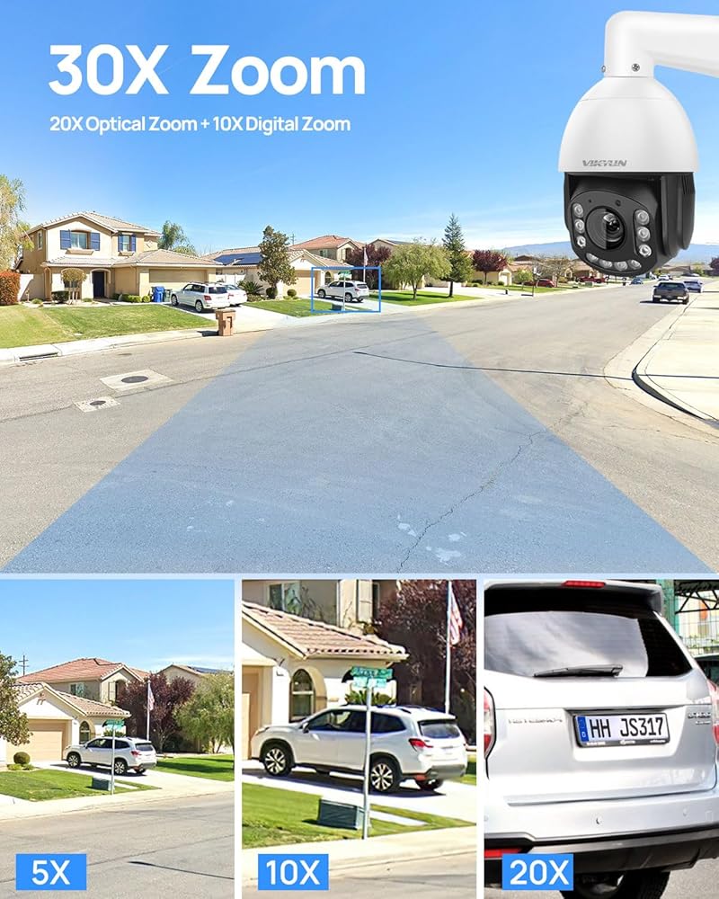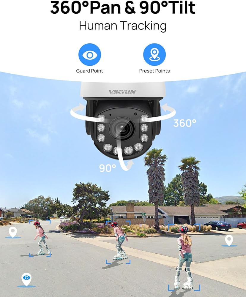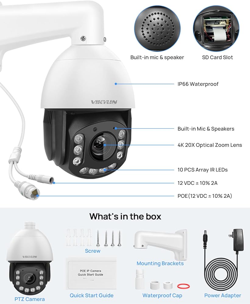 كاميرا VIKYLIN 4K 8MP PTZ IP POE في الهواء الطلق، تكبير بصري 20x، كشف المركبات البشرية، كاميرا PTZ للتتبع التلقائي مع رؤية ليلية بالأشعة تحت الحمراء 393 قدمًا، صوت ثنائي الاتجاه، MicroSD 256 جيجابايت