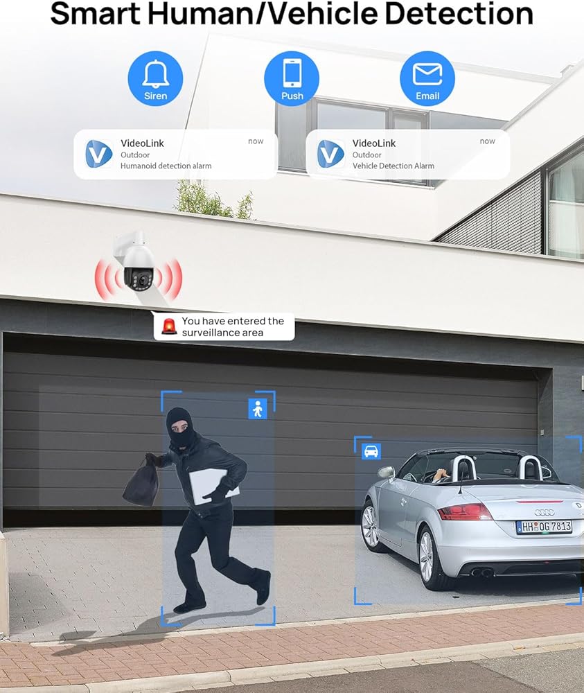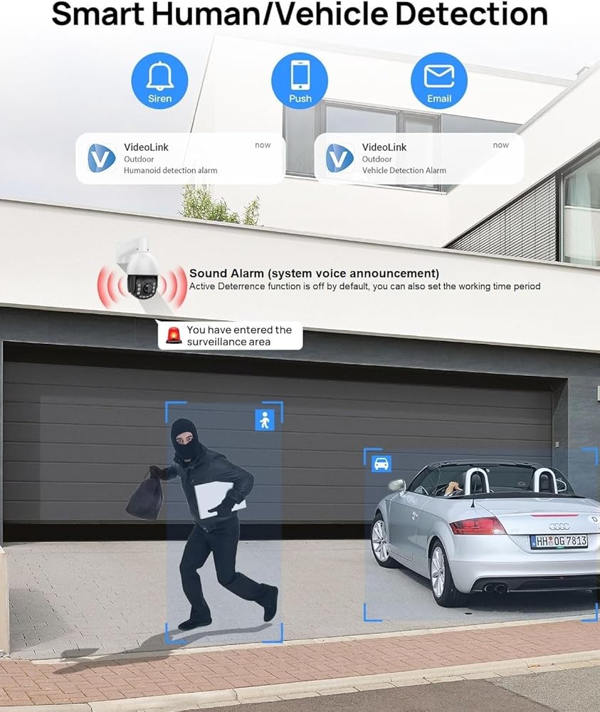 【الكشف عن الإنسان/المركبة، والتتبع التلقائي البشري، والرحلة التلقائية وخيارات التسجيل المرنة】عندما تكتشف كاميرا PTZ IP هدفًا بشريًا، ستقوم تلقائيًا بتتبع وإرسال الفيديو/اللقطة في الوقت الفعلي إلى هاتفك المحمول. دعم 8 مجموعات من طرق الرحلات البحرية، يمكن ضبط كل طريق على 16 موضعًا محددًا مسبقًا ووفقًا لموقعك المحدد مسبقًا، دورية بحرية لحماية منزلك، بدون زوايا عمياء. يمكنه بشكل اختياري تسجيل الفيديو على مدار الساعة طوال أيام الأسبوع أو الفيديو المحفز بالحركة على بطاقة SD (حتى 256 جيجابايت) أو NVR أو FTP.