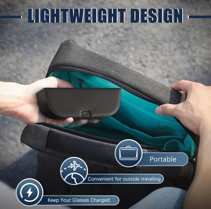 • صغير الحجم ومحمول: التصميم النحيف وخفيف الوزن لحقيبة الشحن هذه يجعل من السهل حملها في جيبك أو حقيبتك، لذلك يمكنك دائمًا إبقاء نظارتك مشحونة.