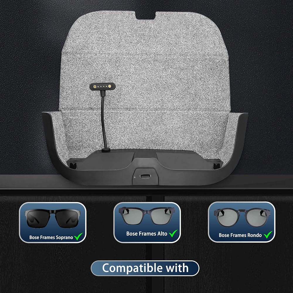 • متوافقة مع إطارات Bose Frames: تم تصميم حافظة الشحن هذه لتتوافق مع نظارات Bose Frames Alto وBose Frames Rondo وBose Frames Tenor وBose Frames Soprano Bluetooth Audio الذكية، مما يضمن تجربة سلسة وخالية من المتاعب للمستخدمين.