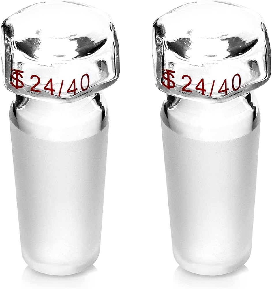 سدادة زجاجية QWORK، قطعتان من سدادة زجاجية مجوفة ذات رأس سداسي للمفاصل الخارجية 24/40