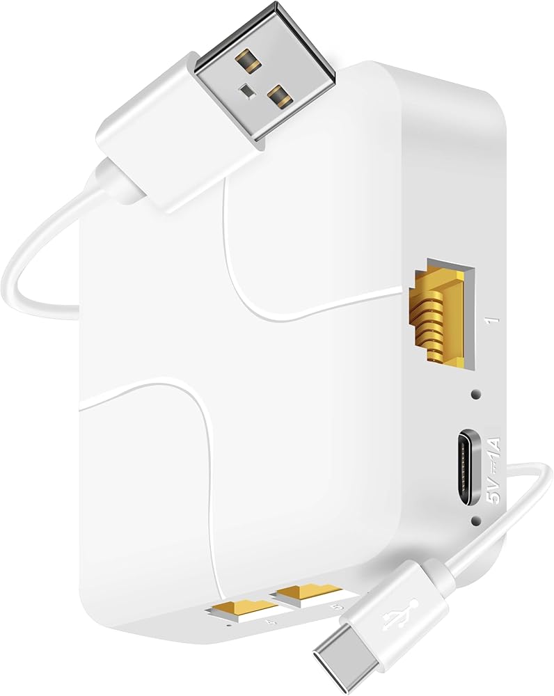 حجم صغير: التصميم النحيف والمحمول يأخذ مساحة صغيرة ولكنه يضيف 4 منافذ، مما يجعله مثاليًا لإعداد محطة عمل مؤقتة أو توصيل وحدات التحكم بالألعاب/الأجهزة الذكية في جميع أنحاء منزلك.