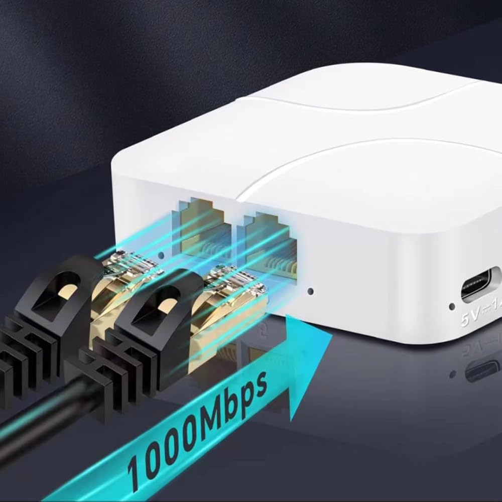 شبكة عالية السرعة: يسمح مقسم إيثرنت بسرعة 1000 ميجابت في الثانية لما يصل إلى 4 أجهزة بالاتصال بشبكتك في وقت واحد بسرعات جيجابت كاملة لنقل الملفات وبثها بسرعة.