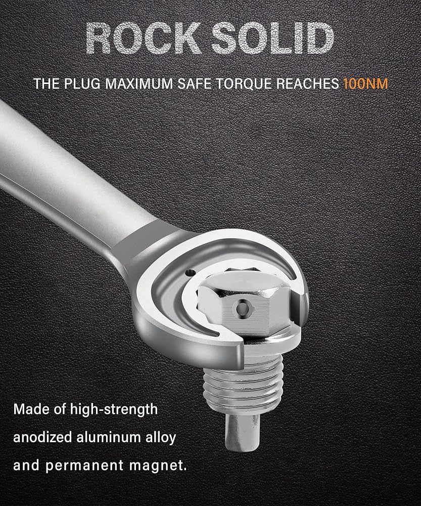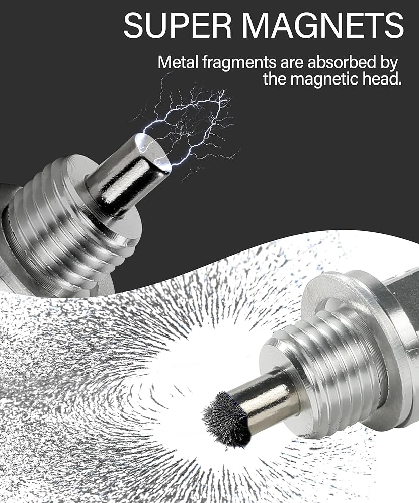 [Super Magnetic] The top of the oil pan drain bolt is equipped with a powerful magnet, which has strong adsorption performance and weighs over 2.2 pounds. It can adsorb metal powder inside the engine to prevent secondary injury.