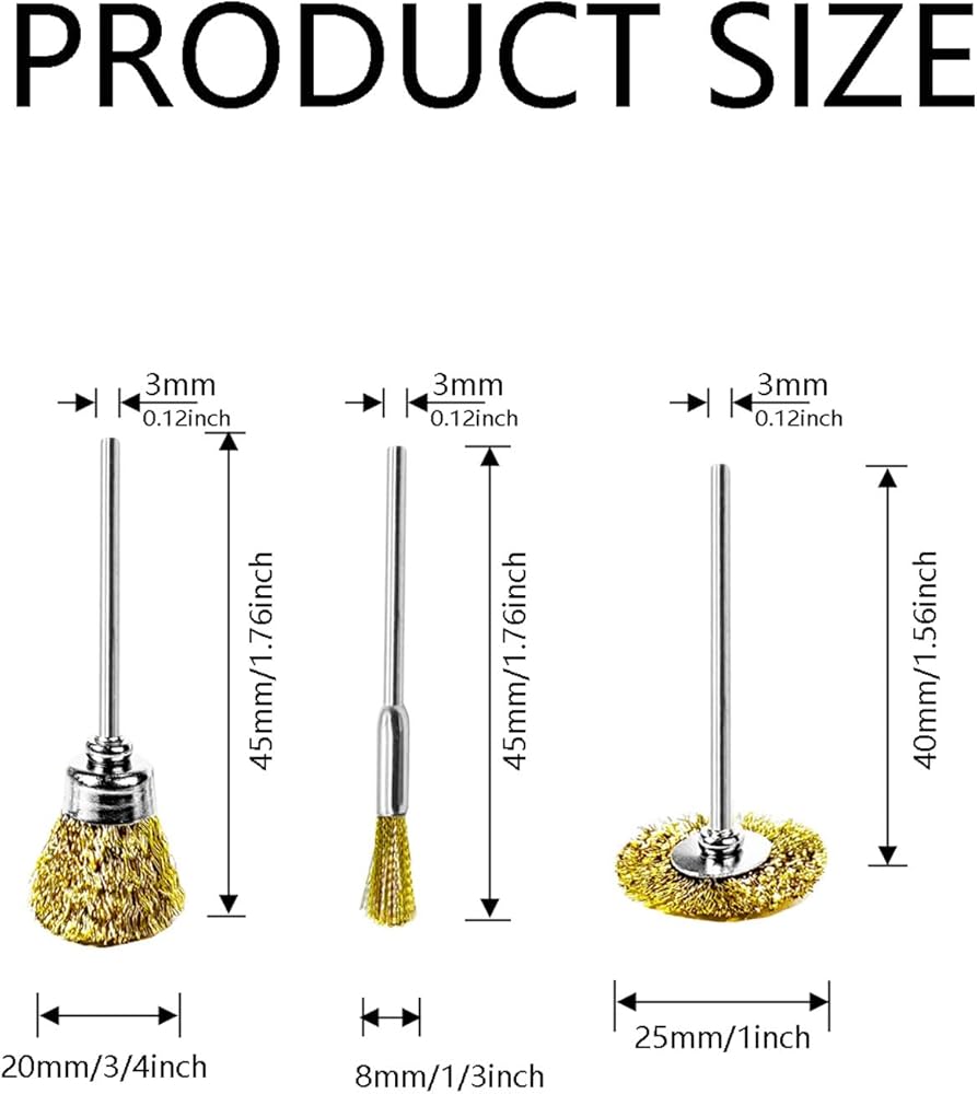 15 Wire Wheel for Drill of Different Diameters: Includes 1"(25mm) *5pcs, 3/4"(20mm)*5pc, 1/3"(8mm)*5pcs wire wheel brush, The larger size is suitable for large areas of fast work, and the smaller size allows for tight spaces and fine work.