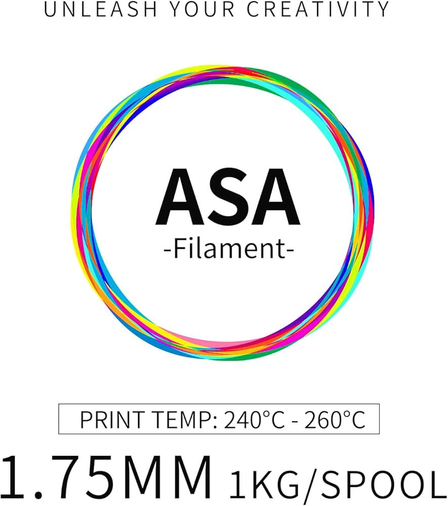 HEAT RESISTANT: ASA Filament can withstand temperatures up to 100˚C (212°F). This type of filament is extremely durable, and impact resistant. You can expect a smooth, matte finish on your 3D models.
