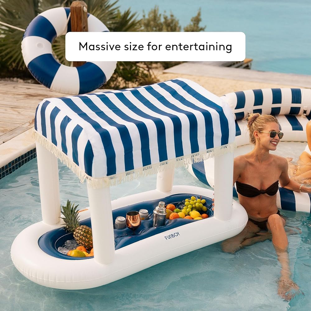 Patent Pending Original FUNBOY Navy Blue Cabana Drink Station, Massive size for entertaining - nearly 6 ft long and over 3 ft high