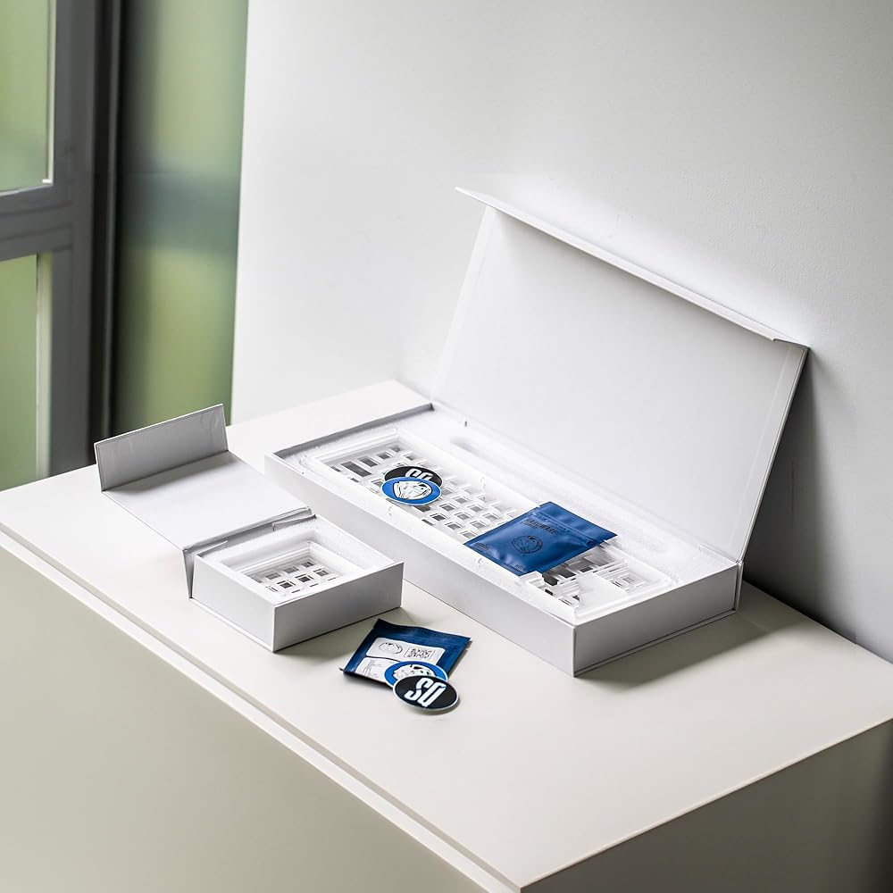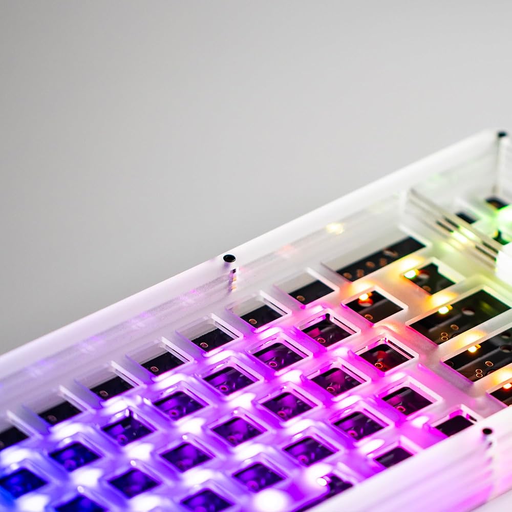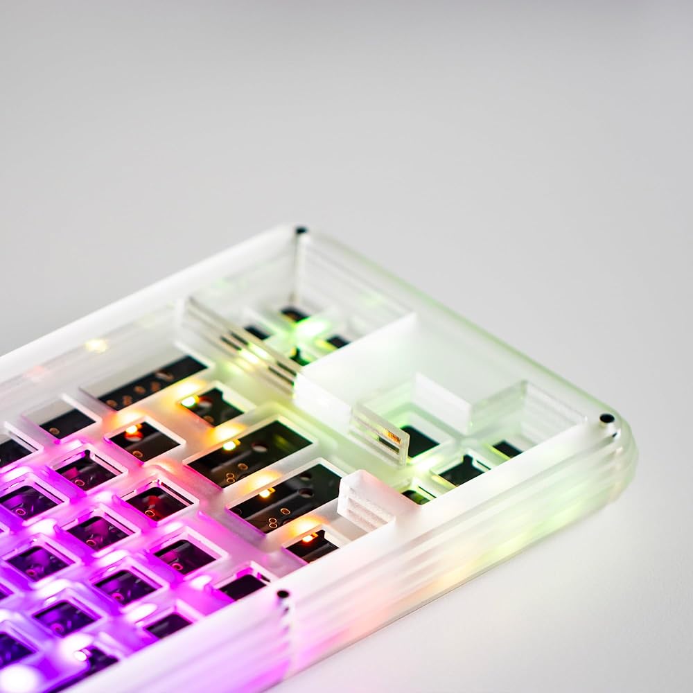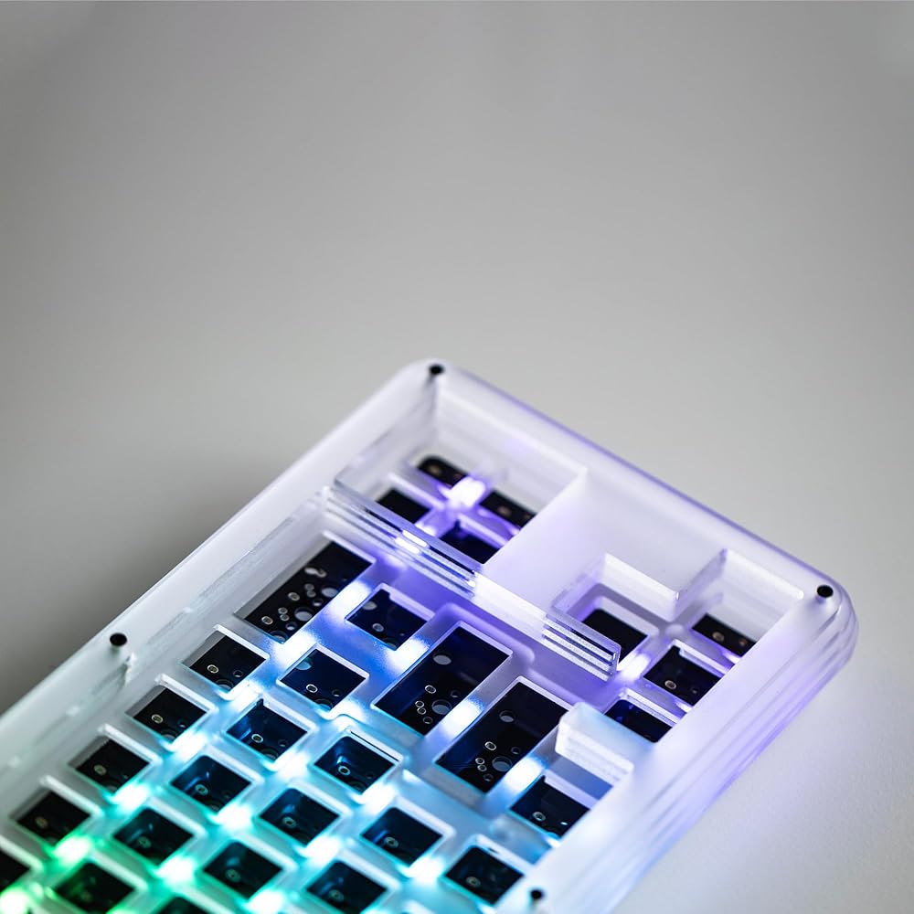 The Stellar is a collaborative project between Space, Qlavier & Yiancar. Made in Austin, TX. This keyboard boasts a frosted acrylic frame that showcases its inner workings, allowing you to witness the magic of every keystroke. With dynamic RGB lighting and a smooth typing experience, this keyboard is not only a visual masterpiece but also a dream to use. Elevate your typing game and make a bold statement with the Stellar65, where form meets function in perfect harmony. *DOES NOT INCLUDE KEYCAPS, SWITCHES, OR STABILIZERS*
