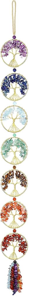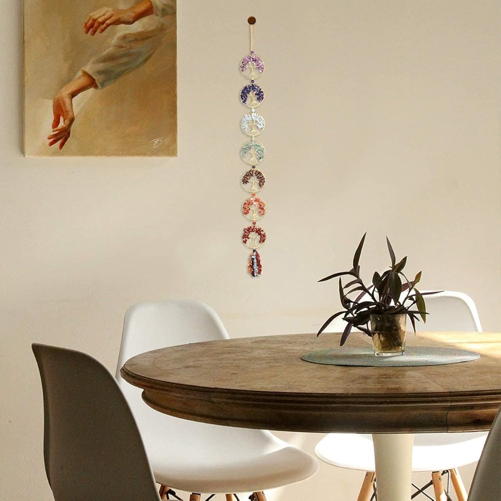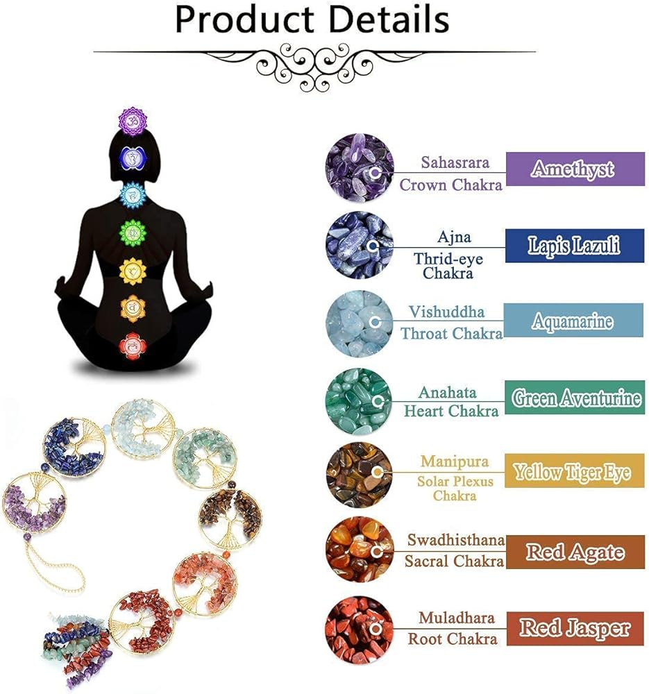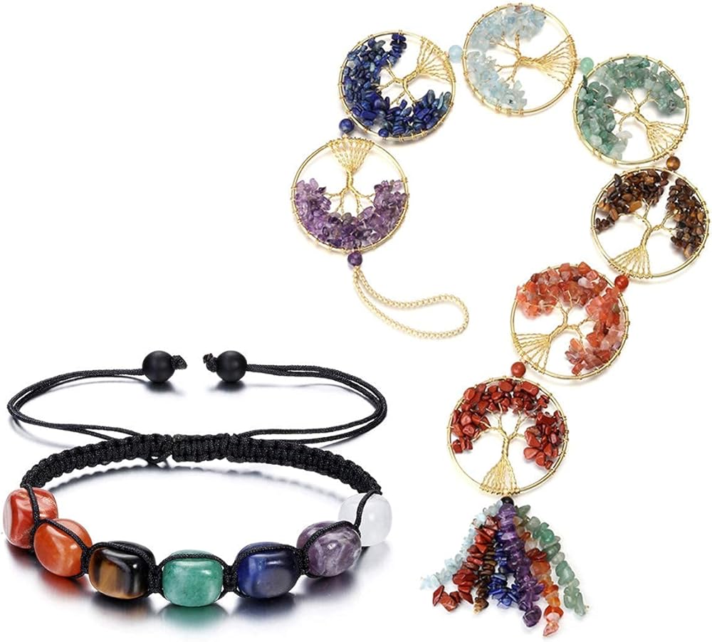 7 Chakra Stone Yoga Bracelet Natural Gemstone Braided Rope Bracelets & 7 Chakra Stones Healing Crystals Life Tree Wall Hanging Ornament Decoration.