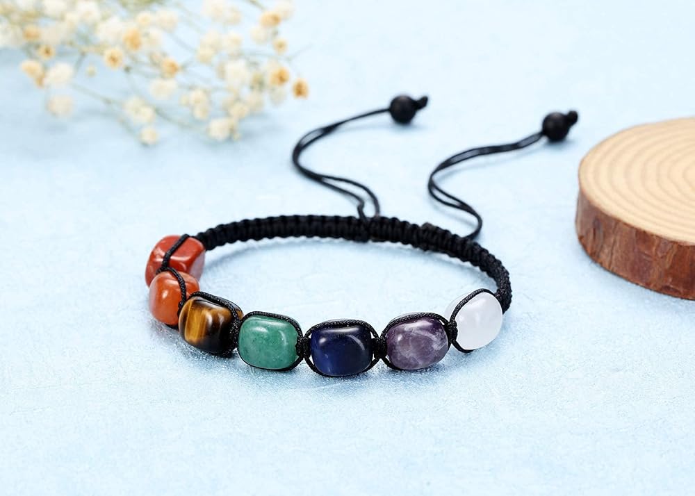 Natural Chakra Stone Healing Crystal Braided Bracelet, Strong and Durable, 10mm Tumbled Crystal, 100% Genuine & Handmade, Colorful Chakra Healing Jewelry for all kinds of Womens Ladies Girls.