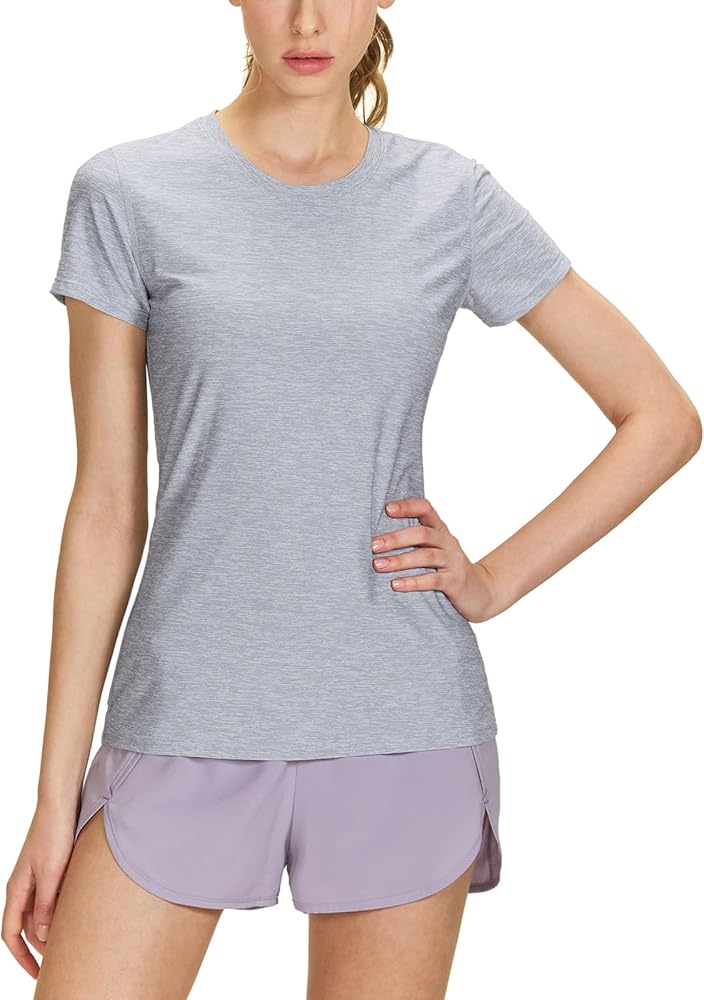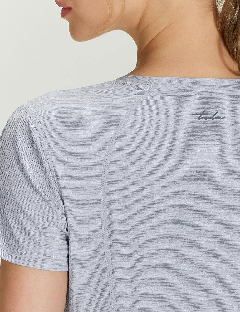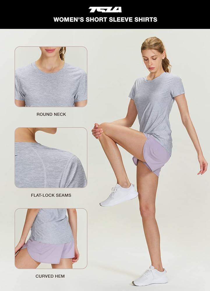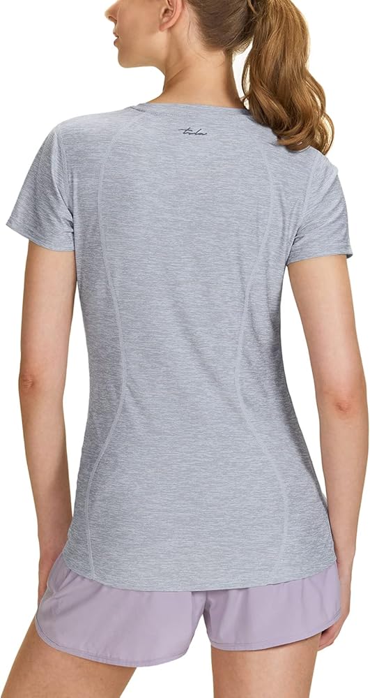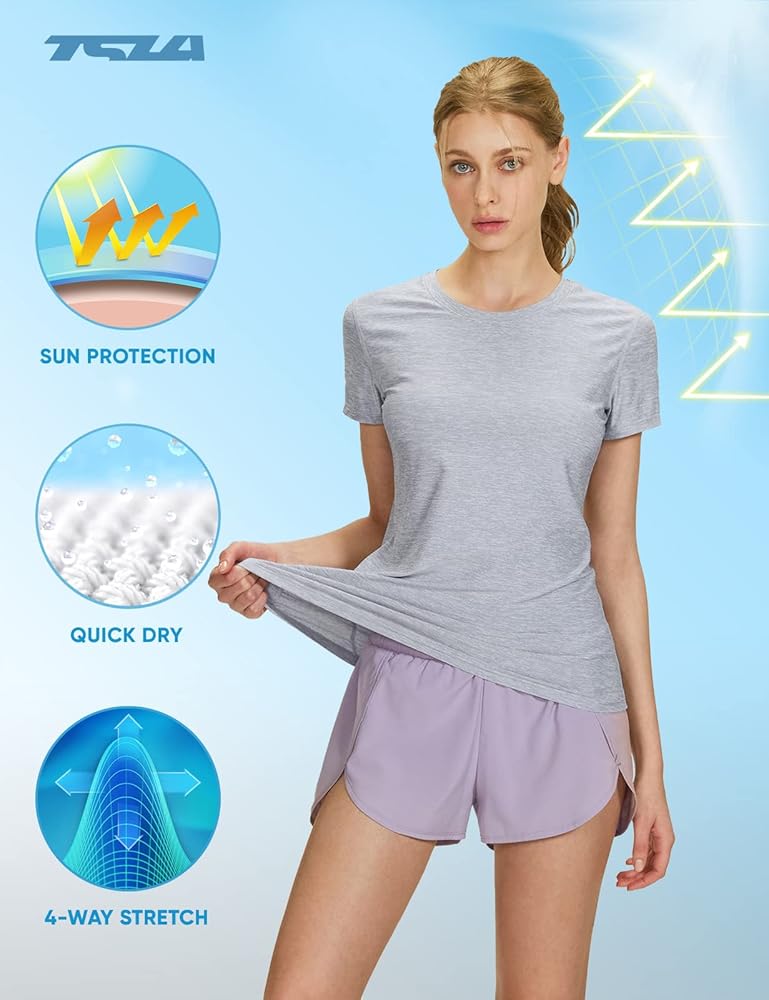 قمصان رياضية نسائية بأكمام قصيرة من TSLA، قميص للجري قابل للتمدد، عامل حماية من الأشعة فوق البنفسجية 50+، رقبة دائرية