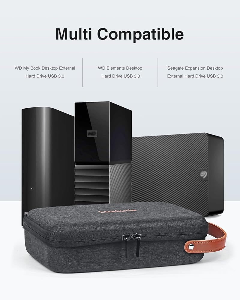 حافظة محرك الأقراص الصلبة Luxtude لسطح المكتب Seagate Expansion Desktop، WD Elements/WD My Book Desktop محرك الأقراص الصلبة الخارجي، USB 3.0 4 تيرابايت 6 تيرابايت 8 تيرابايت 10 تيرابايت 12 تيرابايت، جيب بسحاب لكابل USB محول الطاقة USB Hub، أسود