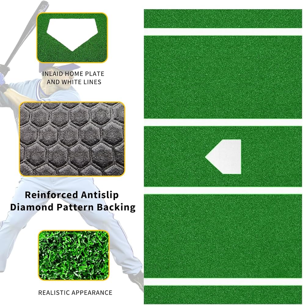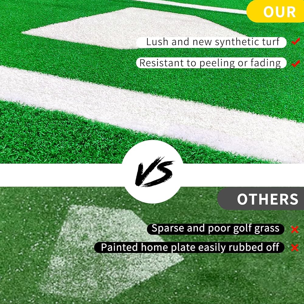 ⚾️مقاومة للبهتان والسقوط: بساط ضرب البيسبول/الكرة اللينة المصنوع من العشب الصناعي مصنوع من عشب صناعي عالي الكثافة ومحمي من الأشعة فوق البنفسجية. توفر اللوحة الرئيسية المرصعة صندوقًا للضارب لممارسة الضرب بشكل أكثر كفاءة. لقد تحتوي على خطوط بيضاء معنقدة بدلاً من الخطوط المطلية حتى لا تبهت أو تتقشر أو تتشقق أبدًا، بغض النظر عن عدد ممارسات الضرب.