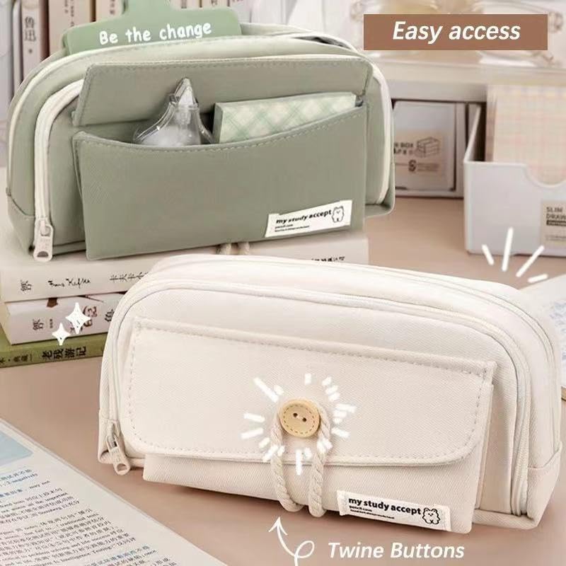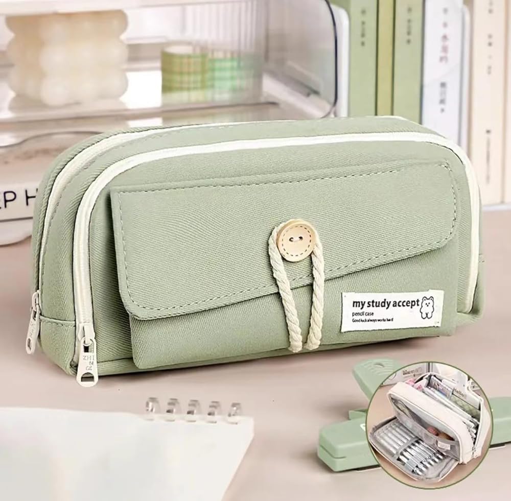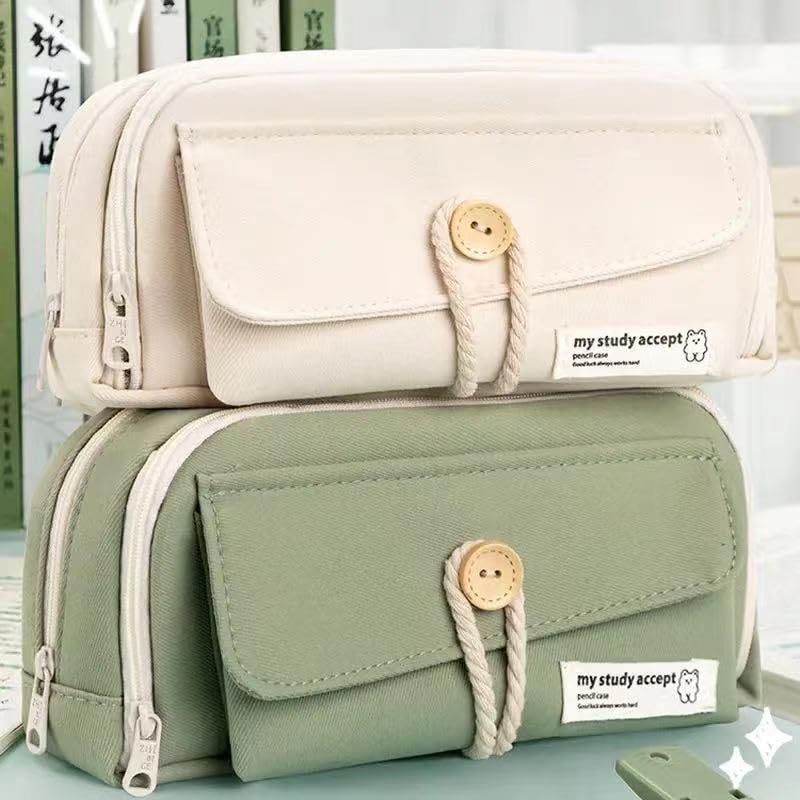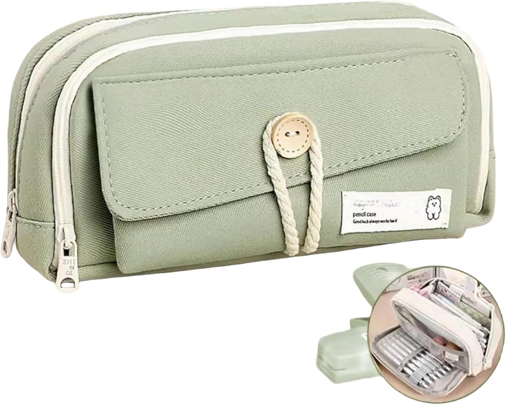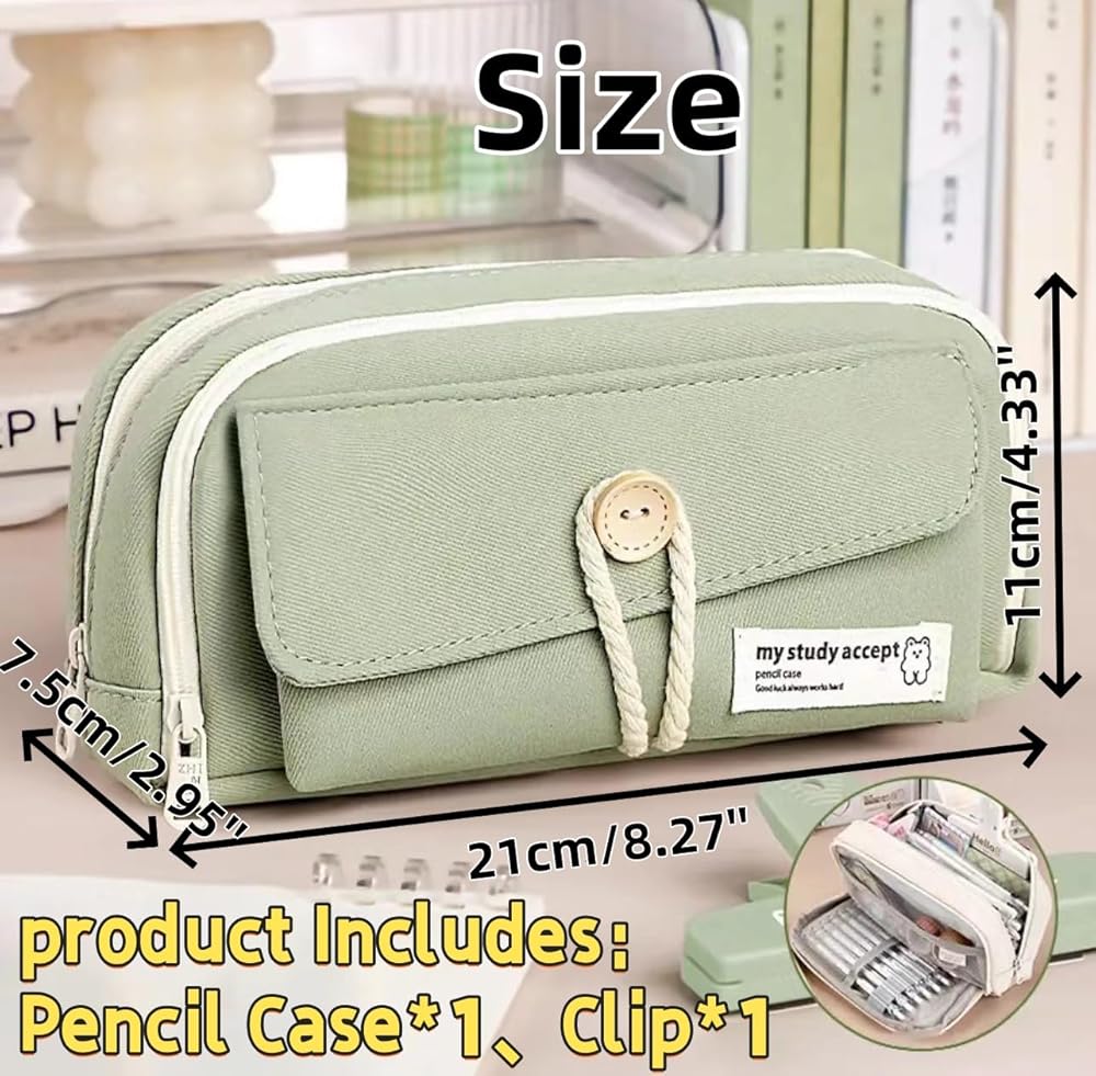 1. **سعة تخزين كبيرة:** بأبعاد 8.3 بوصة × 4.5 بوصة × 3 بوصة، تتميز حقيبة الأقلام الخاصة بنا بمساحة رئيسية واسعة يمكنها استيعاب ما يصل إلى 65 قلمًا أو ملاحظات لاصقة صغيرة الحجم بشكل مريح.