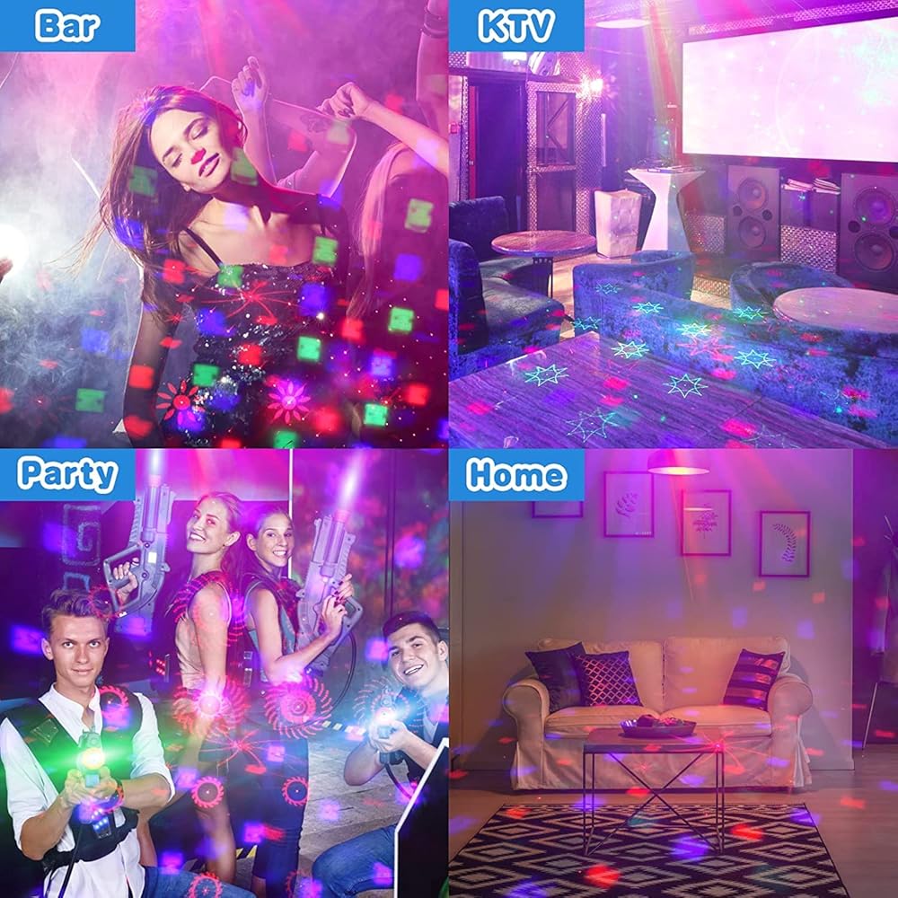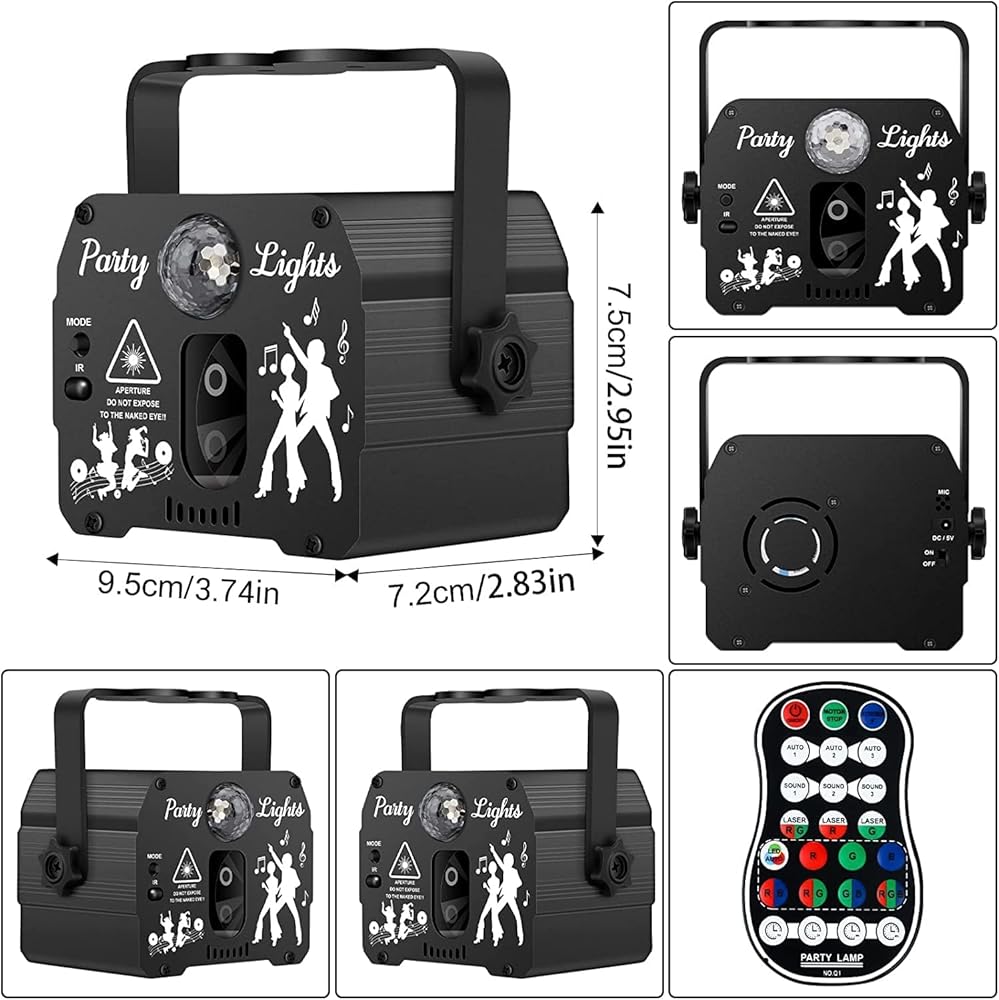 مصابيح حفلات دي جيه ديسكو - ضوء ليزر LED RGB يعمل بالصوت مع جهاز تحكم عن بعد - جهاز عرض ضوئي وامض يعمل بالبطارية لحفلات اعياد الميلاد والحفلات الراقصة وديكور المنزل والهالوين والكريسماس