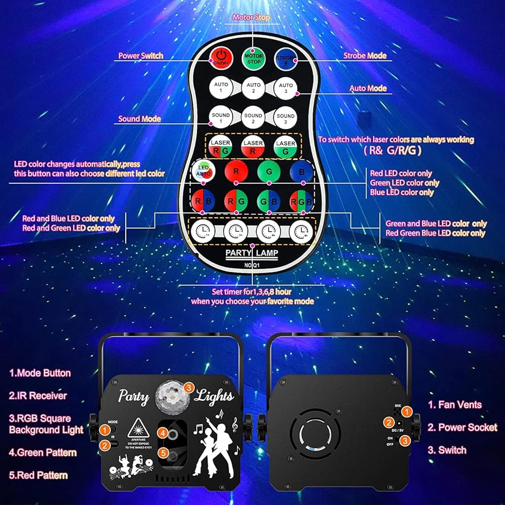 • 【عرض نمط الليزر الرائع المطورة】 أضواء الديسكو الجديدة المطورة 2 في 1 بالليزر ومصابيح LED ساطعة للحفلات، مزودة بـ 90 مجموعة من الأنماط و 128 مربعات RGB، إجمالي 7 ألوان خلفيات (أحمر، أخضر، أزرق، أحمر وأزرق، أحمر وأخضر وأزرق)، و2 خرزة. تركيبات م (أحمر، أخضر) نمط رومانسي جديد ورائع متوفر، مما يخلق تأثيرات إضاءة المسرح مذهلة وقوية مع صورة عالية الجودة وأضواء المسرح RGB!