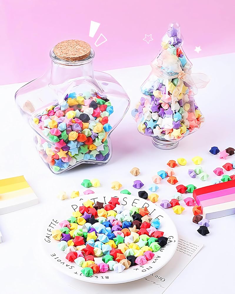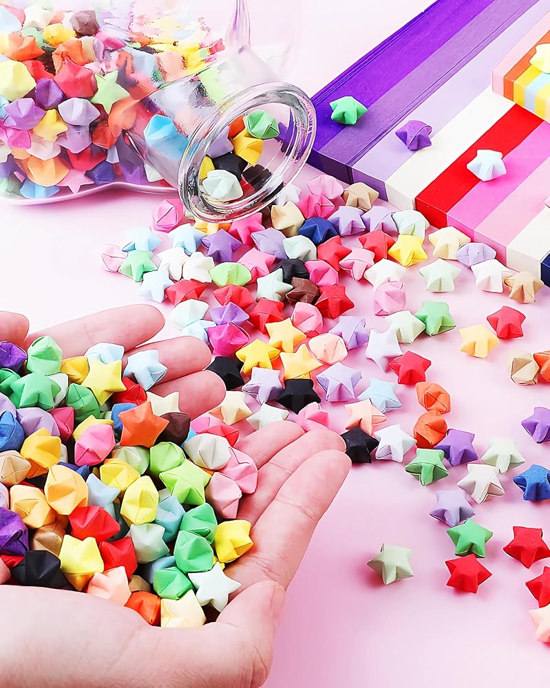 ★ النجوم المحظوظة: هذه المجموعة من النجوم الورقية ليست فقط عمل فني إبداعي وجميل، ولكنها تعتبر أيضًا رمزًا للحظ السعيد والسعادة. تقليديًا، تعد نجوم الأوريجامي رمزًا للحظ السعيد ووسيلة للتعبير عن الحظ السعيد والتمنيات الطيبة. يمكن اعتبار جمع هذه القطع النجمية أو إهداؤها بمثابة جلب الحظ السعيد والبركات.