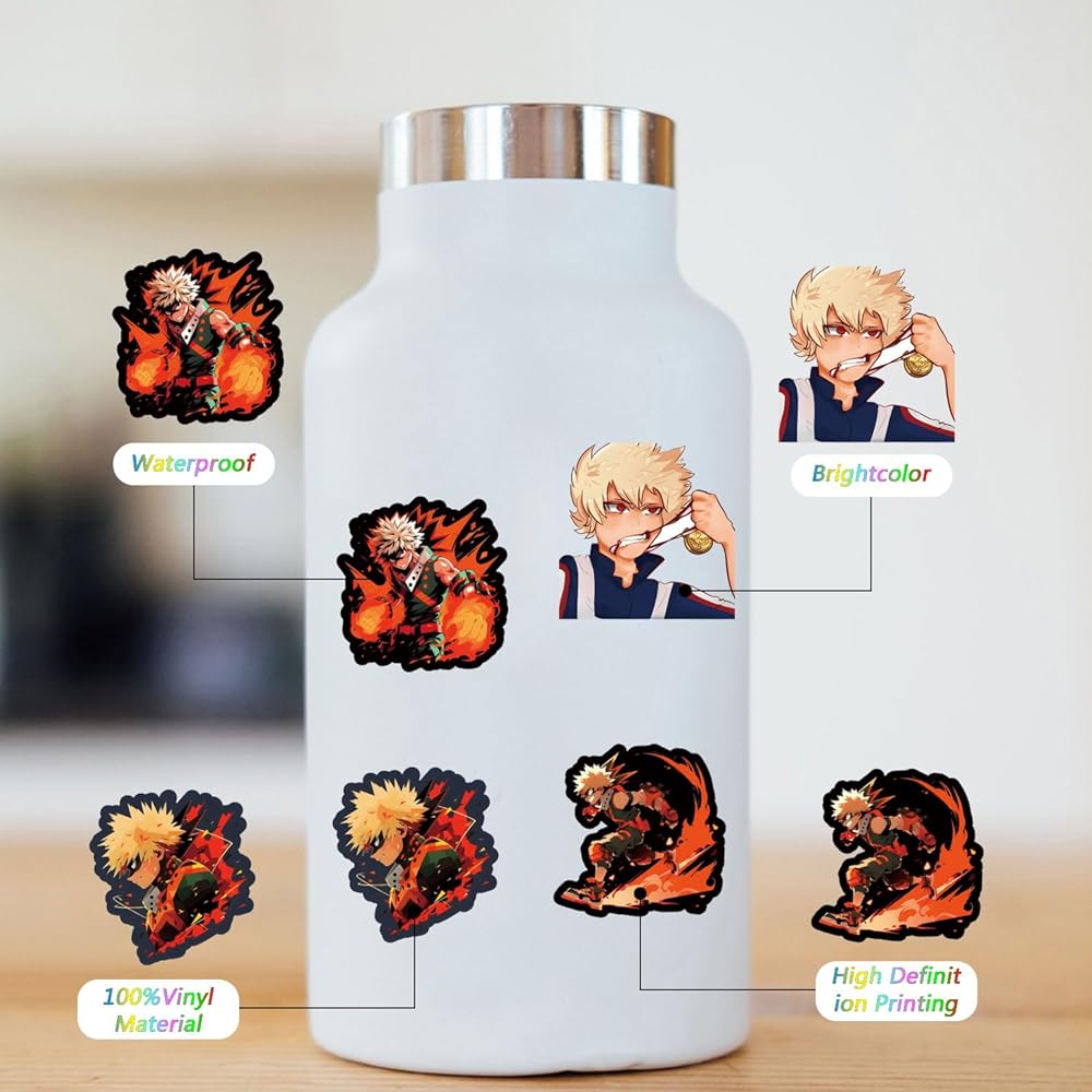 62 قطعة من ملصقات Bakugo Anime Kawaii مقاومة للماء | لطيف جماليات vsco الكرتون بارد deacls الكتابة على الجدران ملصقات الفينيل للبالغين المراهقين الفتيات الأطفال زجاجة ماء التزلج الأمتعة الكمبيوتر المحمول الهاتف