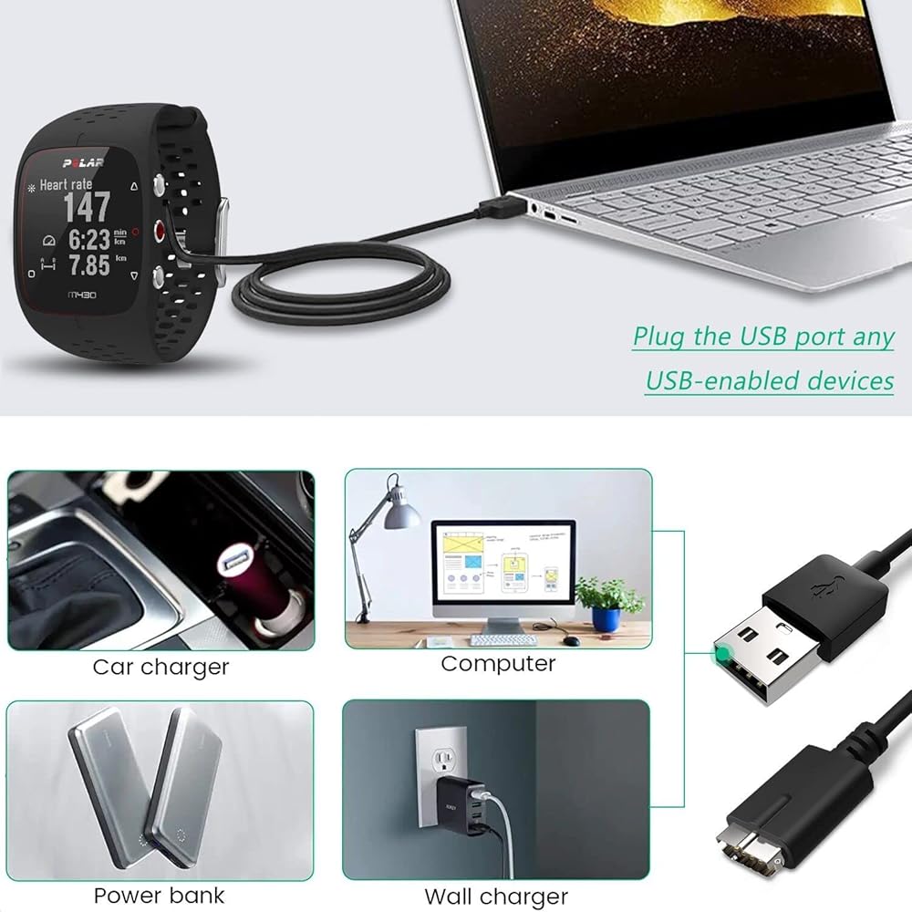 شاحن Polar M430 M400، كابل شحن USB بطول 3.3 قدم متوافق مع الساعة الذكية Polar M430 M400