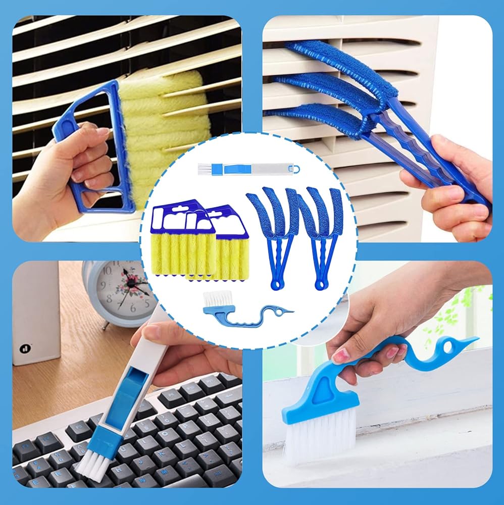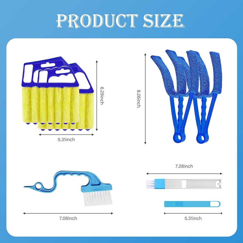 • 6PCS Blind Cleaner Duster Tool: Venetian Window Cleaning Tools with 2 Mini Blind Slat Brushes,2 Microfiber Duster,1 Groove Gap Brush,2 in 1 Dustpan Brush,Cleaning Gadgets for Air Condition,Car Vents, Fan