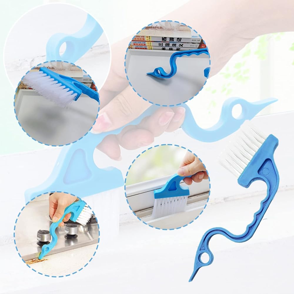 • 2-in-1 Window Track Cleaning Brush: This 2 in 1 hand-held groove gap cleaning brush goes where no sponge can fit.The brush sweeps away dirt,while the scraper dislodges debris from tight corners.Elevated, curved handle has built-in finger grips for a secure hold.