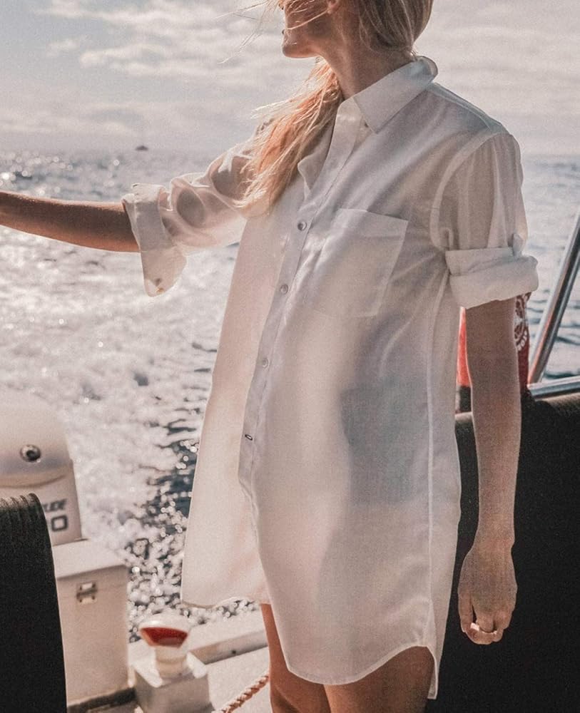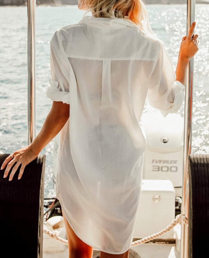 Chunoy Women Casual Beach Wear Cover Up Midi Dress Lightweight Blouse Top Swimsuit Shirt