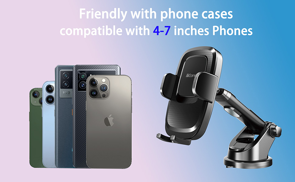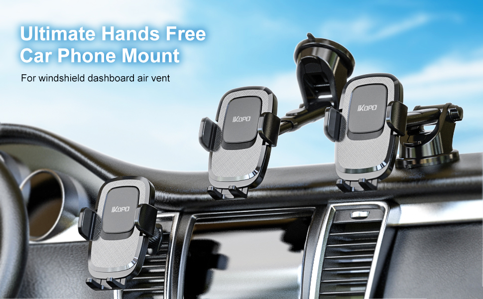 حامل هاتف السيارة 3 في 1 من IKOPO، حامل هاتف خلوي بذراع طويل عالمي للوحة قيادة السيارة والزجاج الأمامي وفتحة التهوية مناسب للهواتف الكبيرة والحافظة السميكة