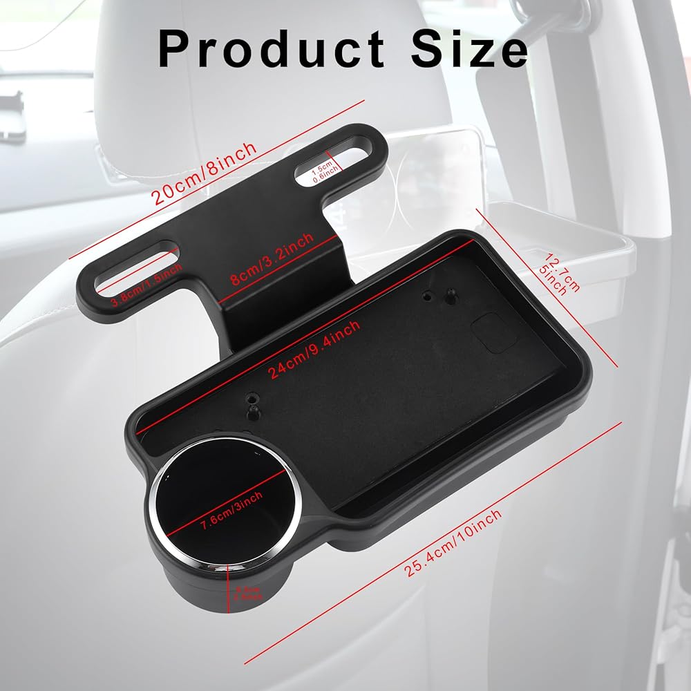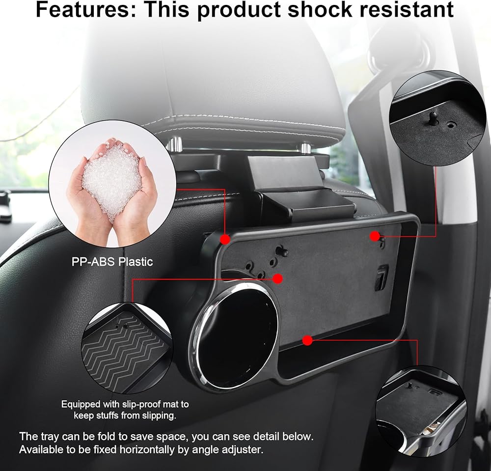 High Quality: The car backseat cup holder dinner plate is made of high quality ABS material, not easy to break and bend, safe and environmentally friendly. Adjustable design with flocked material pads prevents cups and pieces from sliding and shaking, and won't take up space when not in use.