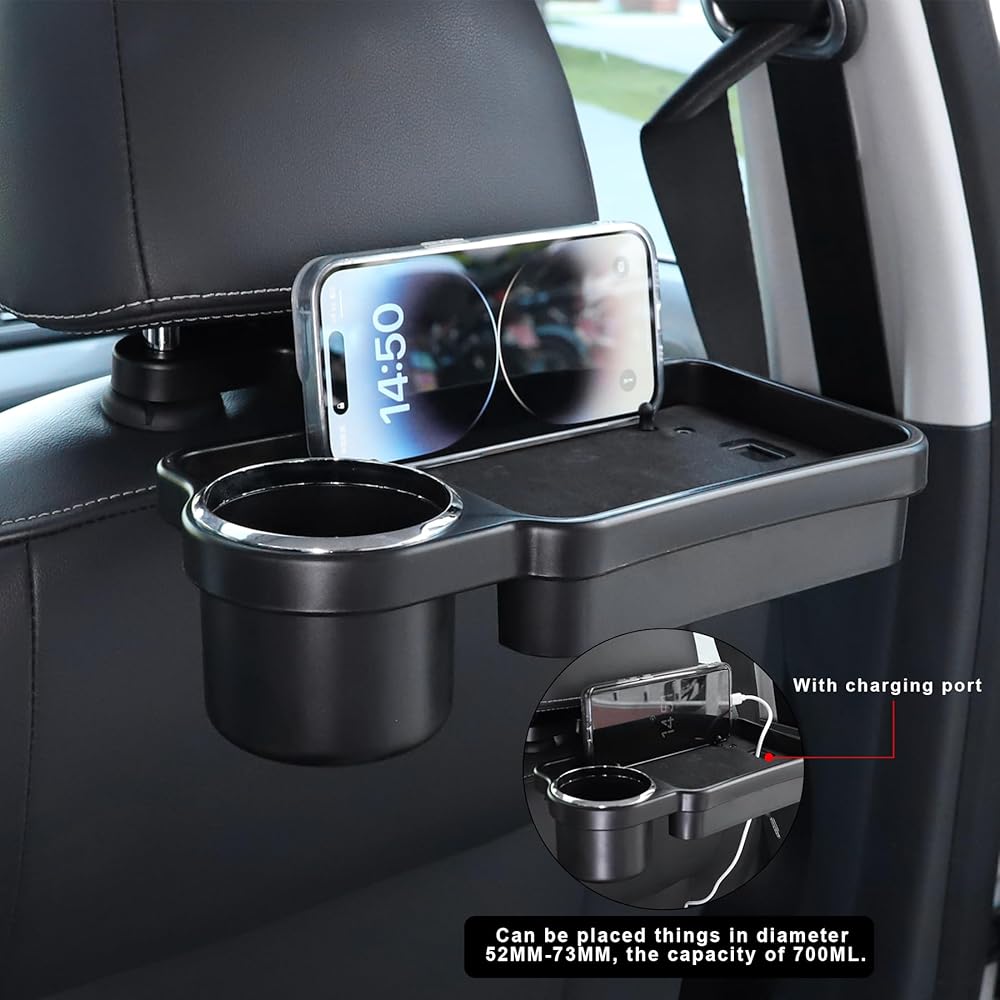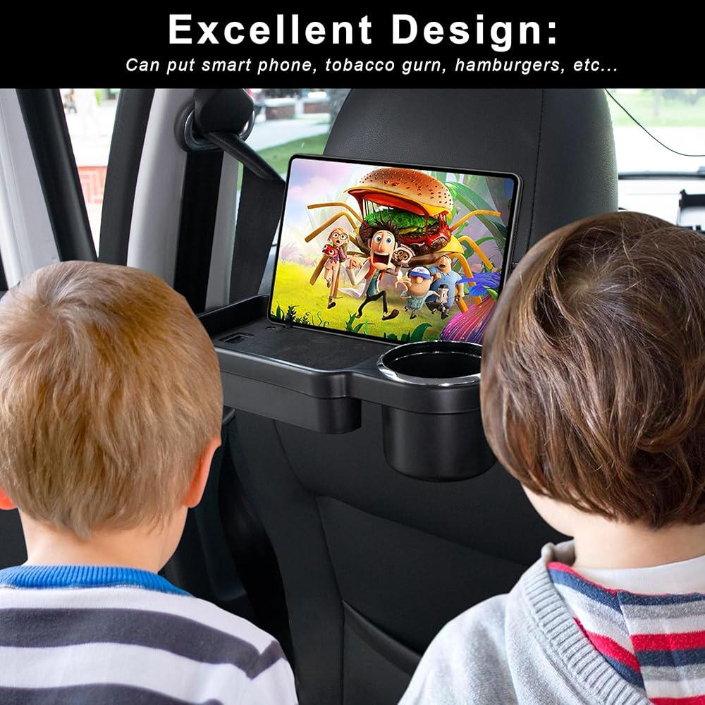 Multiple Uses: Can be used as a food tray, coffee holder, perfect for kids to store odds and ends and snacks. Also comes with a charging port for easy charging when you're placing tablets and other electronics, keeping your travels organized and fun.