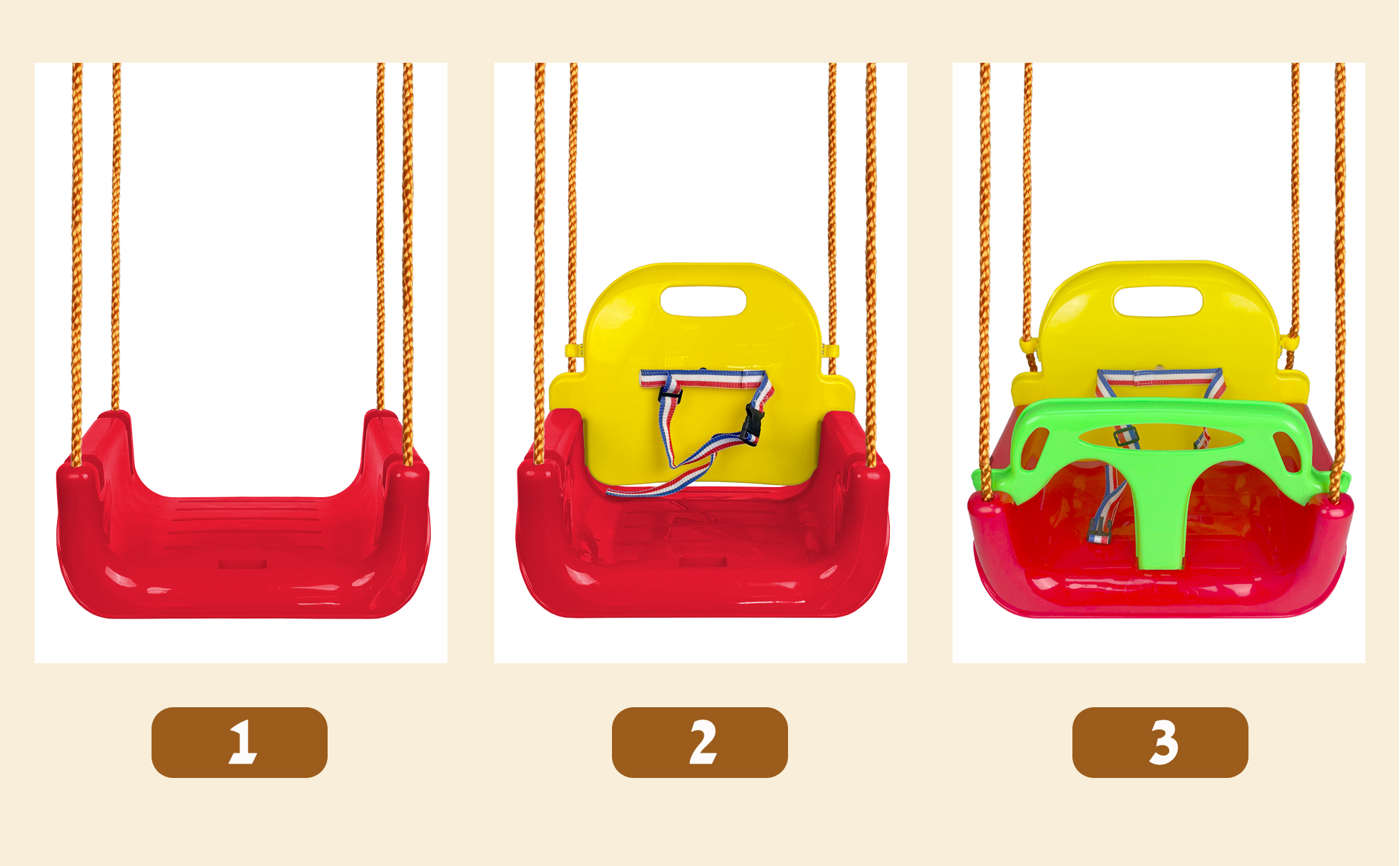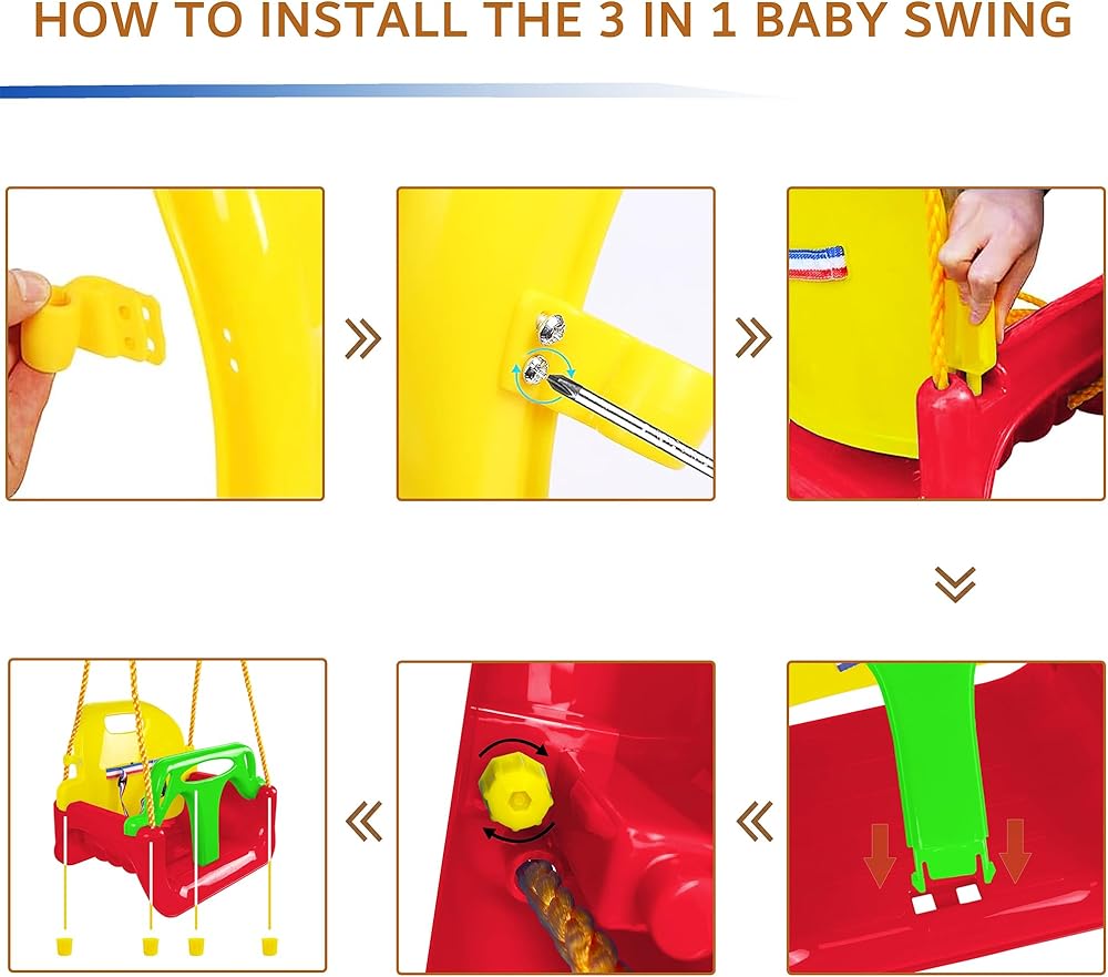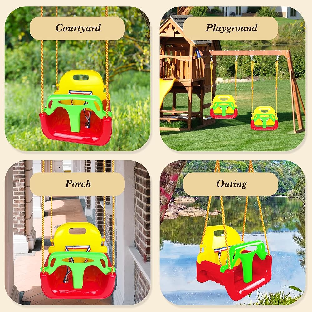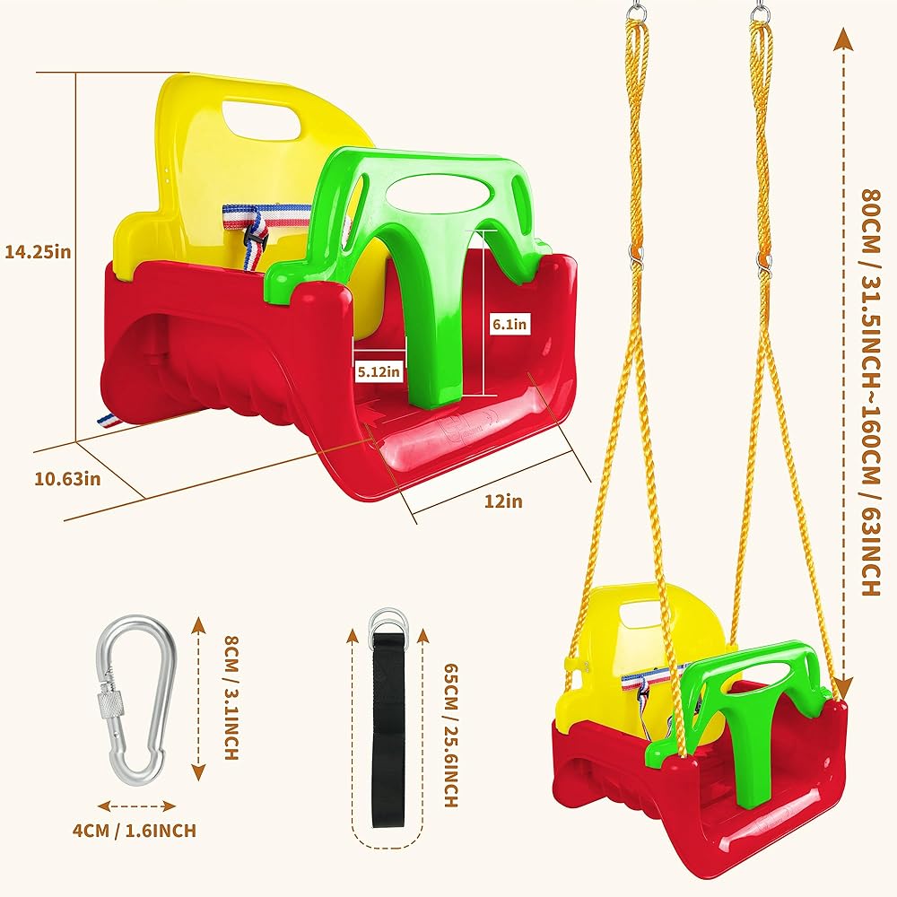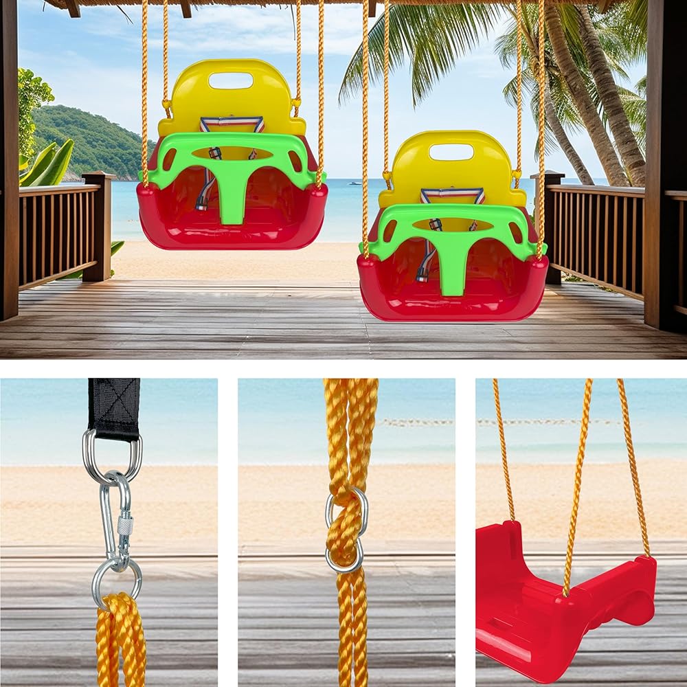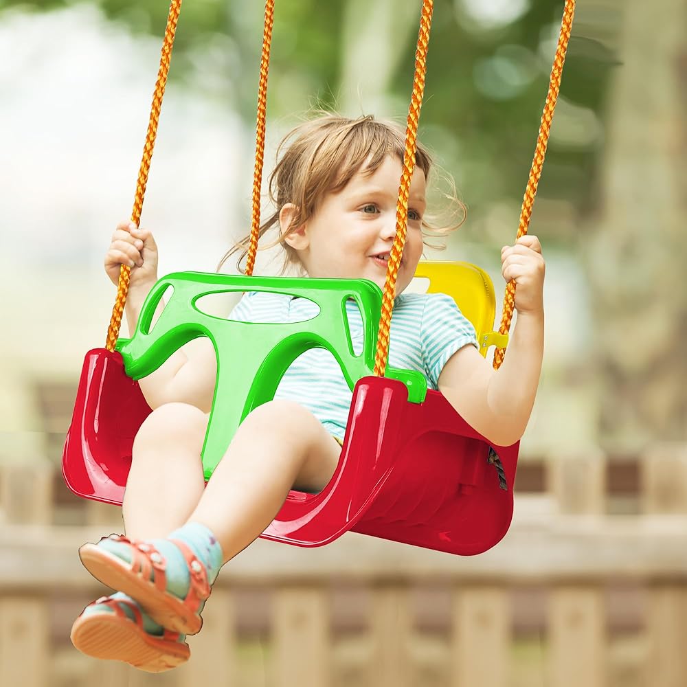 • ★【مجمعة بالكامل】 إنها متصلة بـ 3 أجزاء، تلبي احتياجات الأعمار المختلفة. بالإضافة إلى ذلك، يحافظ التصميم الخلفي المرتفع على سلامة طفلك وأمانه أثناء التأرجح. تأتي مع أشرطة وأبازيم شجرة، لا توجد حاجة لأي أدوات تركيب أخرى