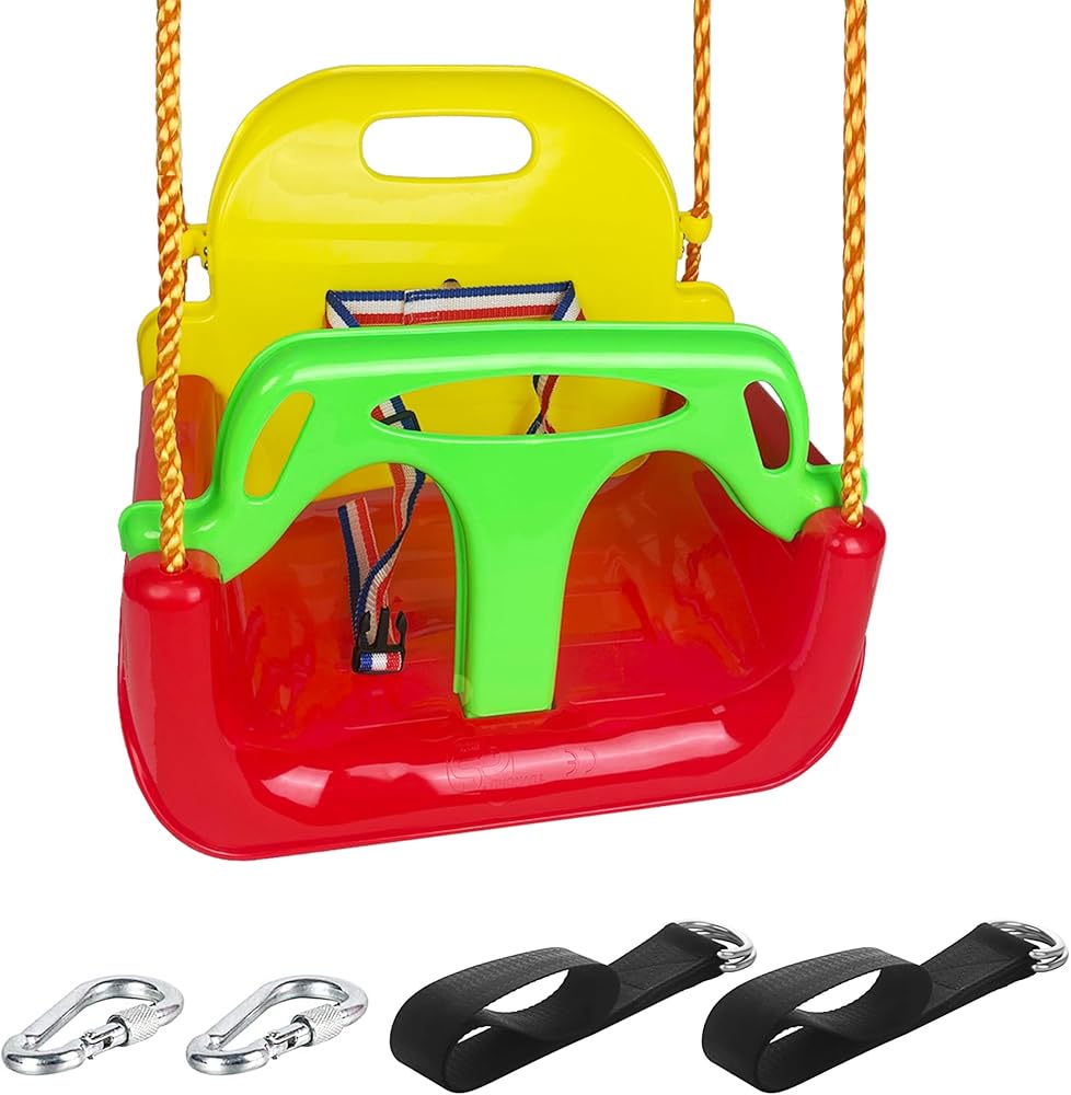 مقعد أرجوحة للأطفال الصغار من كينسبوري، أرجوحة للرضع 3 في 1، مقعد أرجوحة آمن قابل للفصل للأطفال مع أشرطة تعليق لمجموعات التأرجح في الفناء الخلفي والحديقة ومعدات اللعب (أحمر)