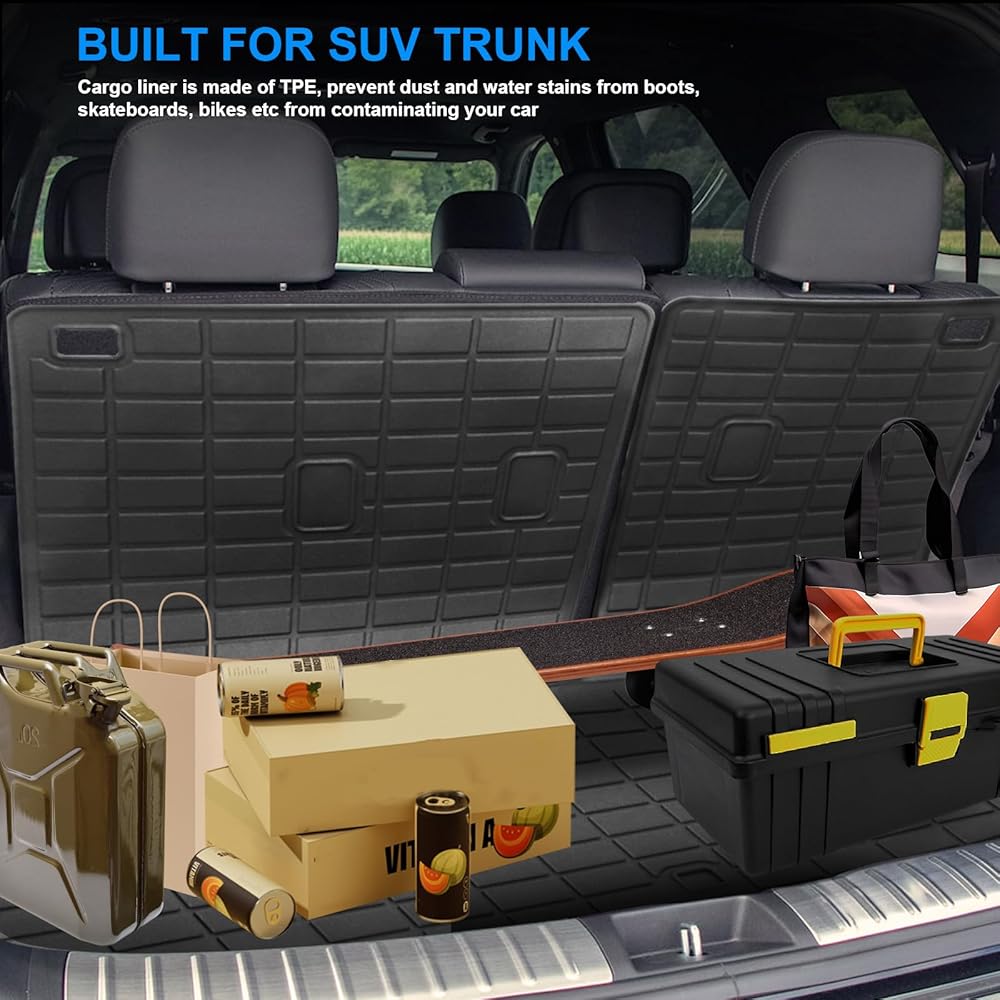 ◀ مصممة لصندوق سيارات الدفع الرباعي ◀ بطانة الحمولة مصنوعة من مادة TPE، وتمنع الغبار وبقع الماء من الأحذية وألواح التزلج والدراجات وما إلى ذلك من تلويث سيارتك.