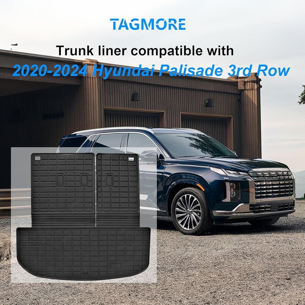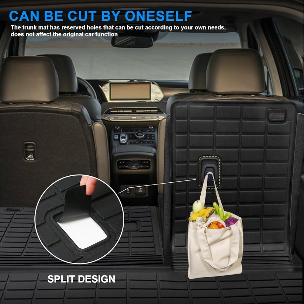 بطانات شحن سيارات الدفع الرباعي - متوافقة مع ملحقات Hyundai Palisade 2020-2024، حصيرة شحن خلفية قابلة للطي في جميع الأحوال الجوية (بطانة صندوق السيارة مع حصيرة مسند الظهر)