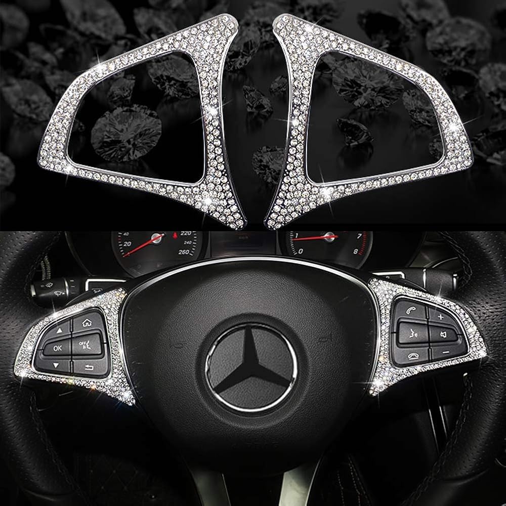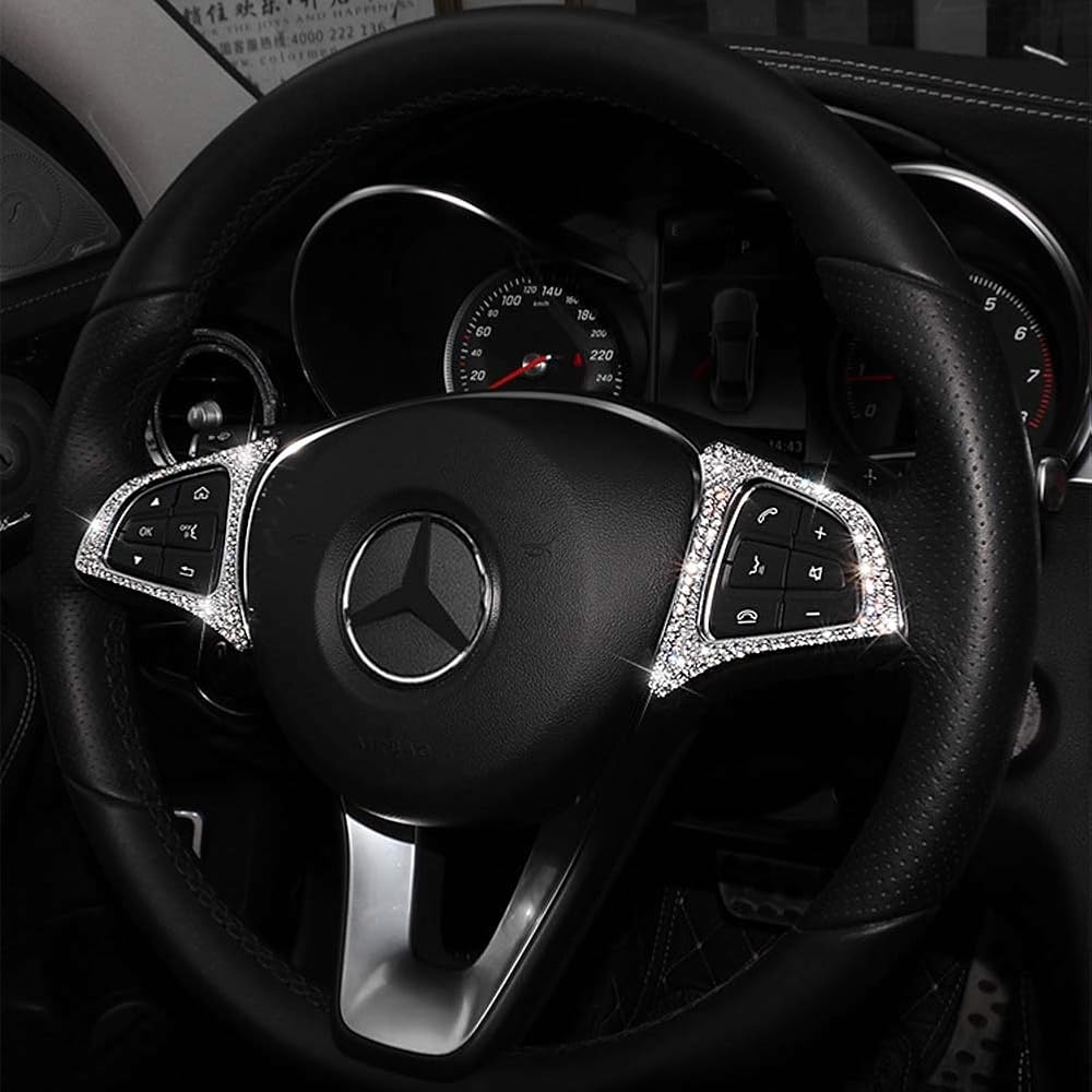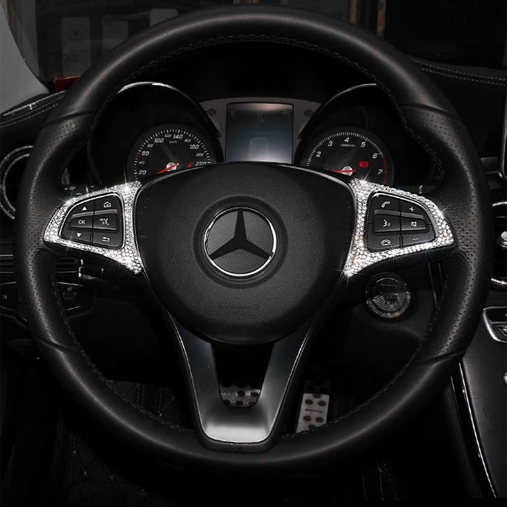 بلينغ بلينغ كريستال عجلة القيادة زر غطاء الإطار سيارة الداخلية تقليم ملصق الشارات ل ABC الفئة CLA GLA CLS GLC GLE GLS SLC SL