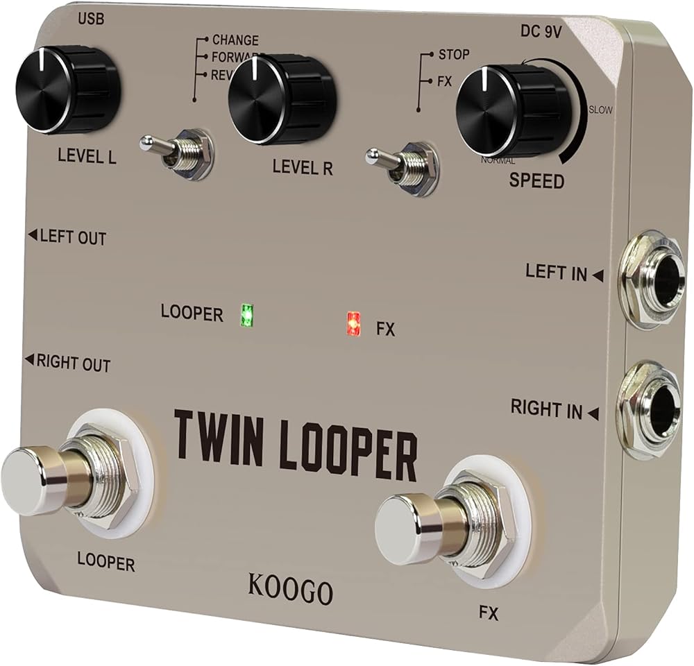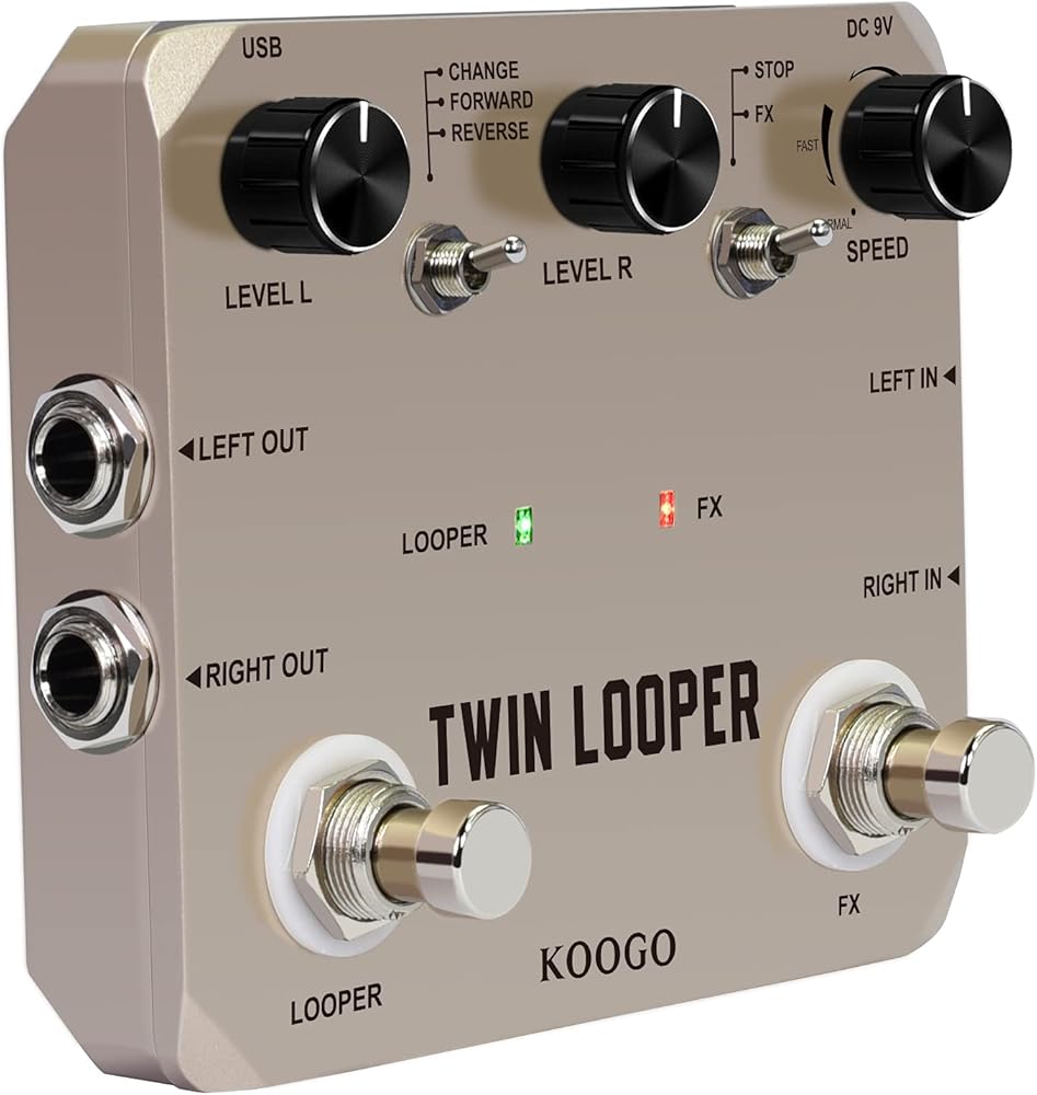 محطة حلقة دواسة تأثير الجيتار الكهربائي من Koogo Twin Looper، 11 نوعًا من اللعب مع 10 دقائق من وقت التسجيل