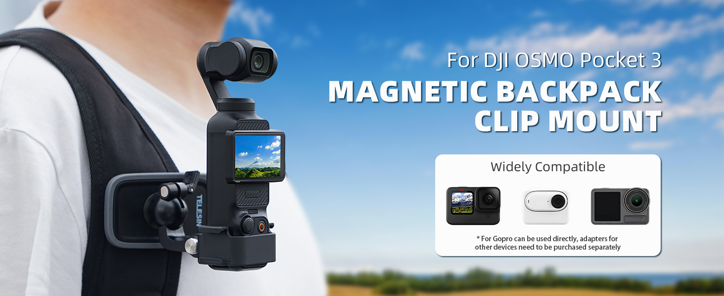 حقيبة ظهر مغناطيسية بمشبك لجيب DJI OSMO 3 (مع محول تمديد)، حامل حزام كتف كروي يدور 360 درجة لملحقات Gopro 12/11/10/9/8 Osmo Action 4 3 Insta360 GO 3