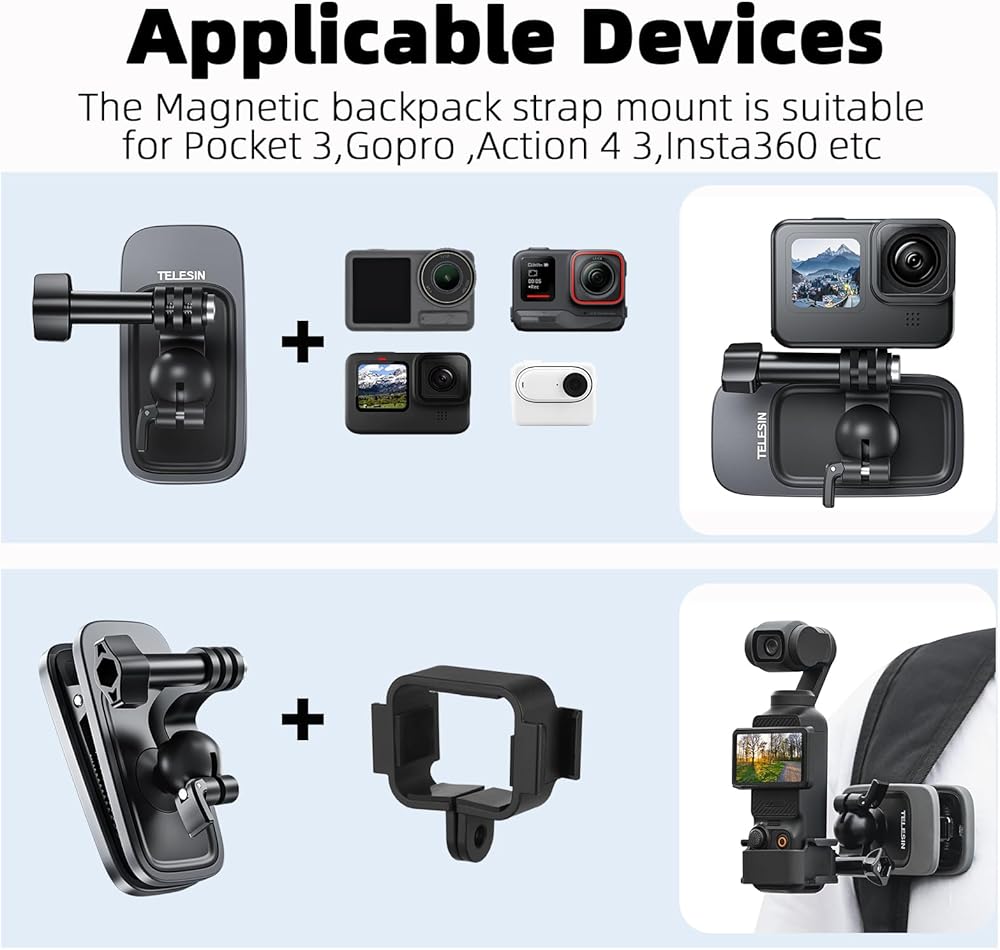 • إمكانية التعديل 360 درجة: يتميز الرأس الكروي لمشبك حقيبة الظهر بتصميم 360 درجة، مما يسمح لك بتعديل زاوية واتجاه الكاميرا بسهولة. التقط مجموعة واسعة من وجهات النظر للقطات POV الخاصة بك وقم بتوثيق مغامراتك المذهلة!