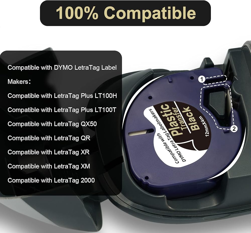 Replacment for Dymo Label Maker Refills 12mm x 3m is Compatible with Dymo Handheld Label Makers: LT-100H, LT-100T, LT-100H Plus, LT-100T Plus, QX50, XR, XM, 2000.