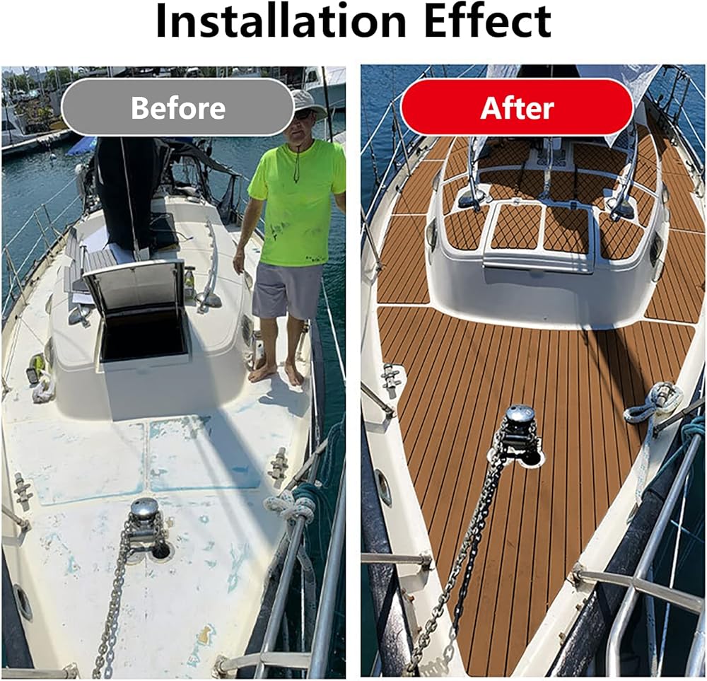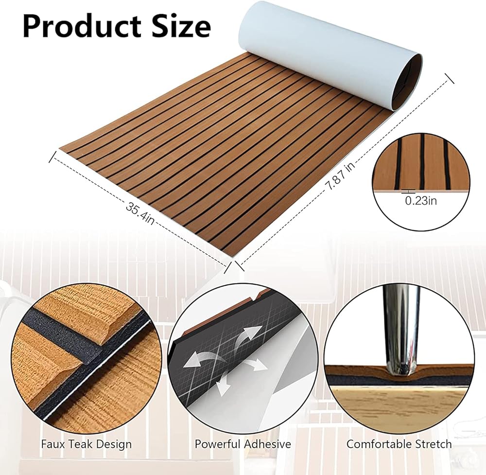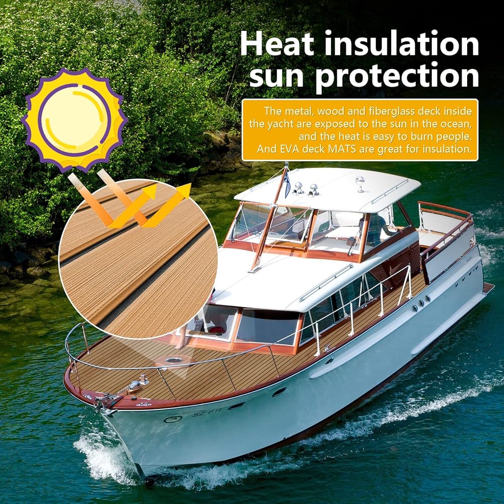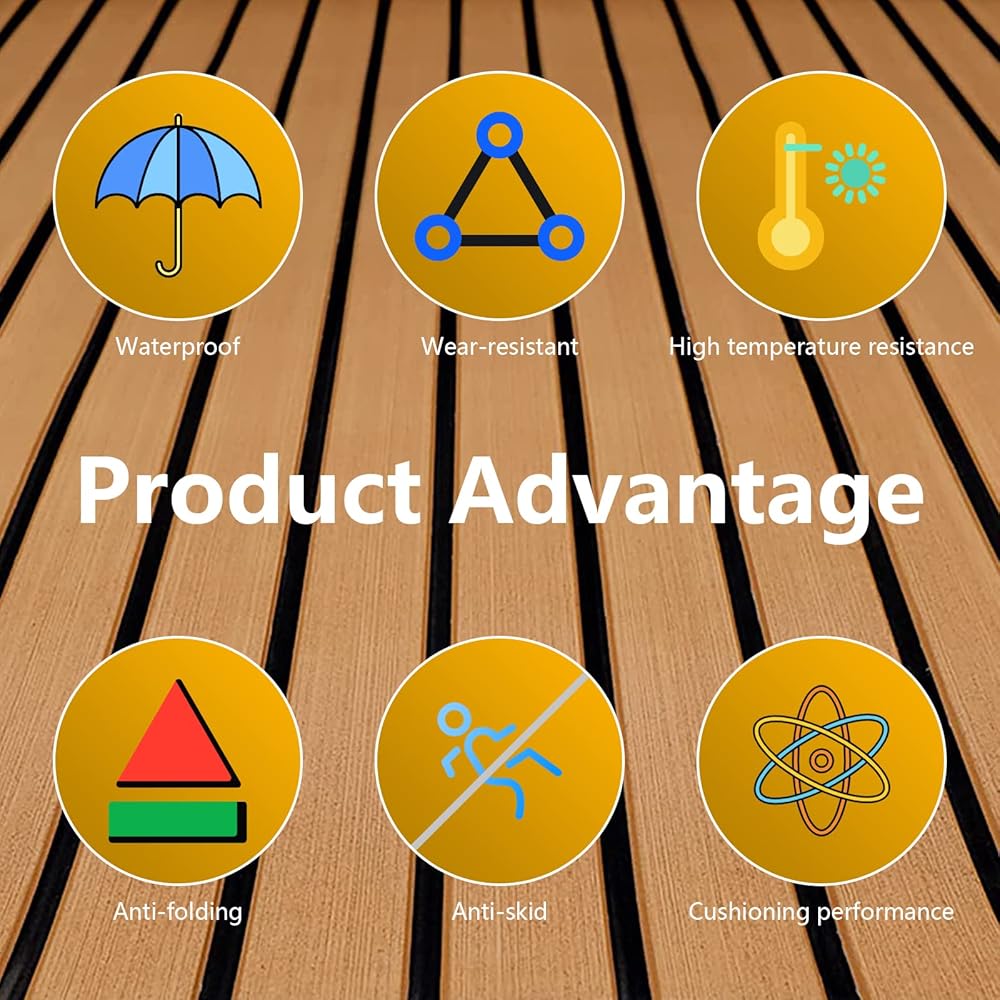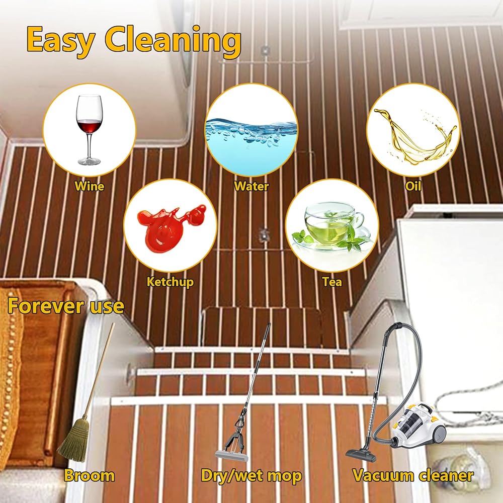 【سهلة الصيانة】يمكن غسل أرضيات القارب المصنوعة من إسفنج EVA بسهولة باستخدام مكنسة كهربائية، أو غسلها بالضغط. إنه يتمتع بجمال خشب الساج الصناعي وراحة السجاد.