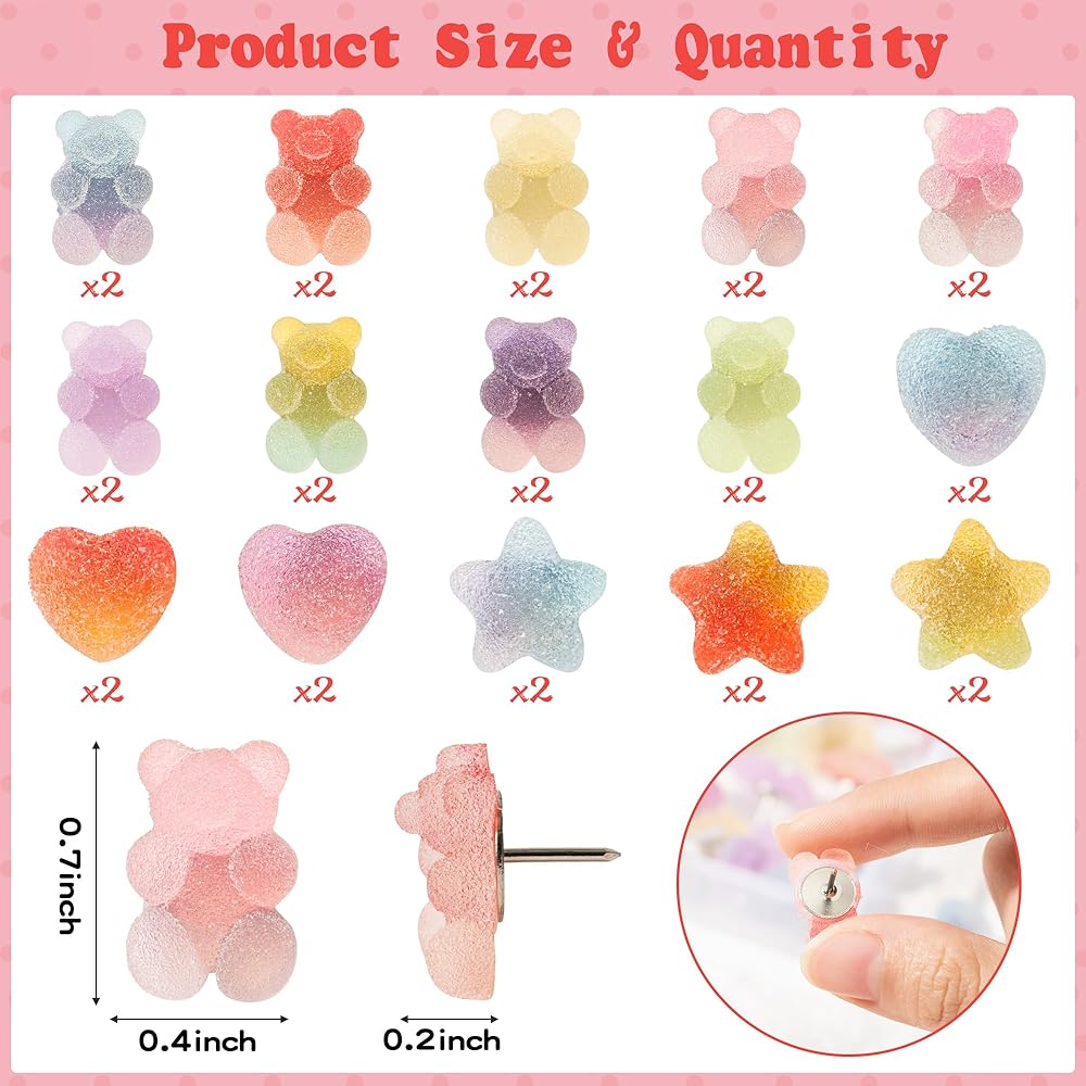 FoszaSzept 30Pcs Colorful Gummy Bears Push Pins