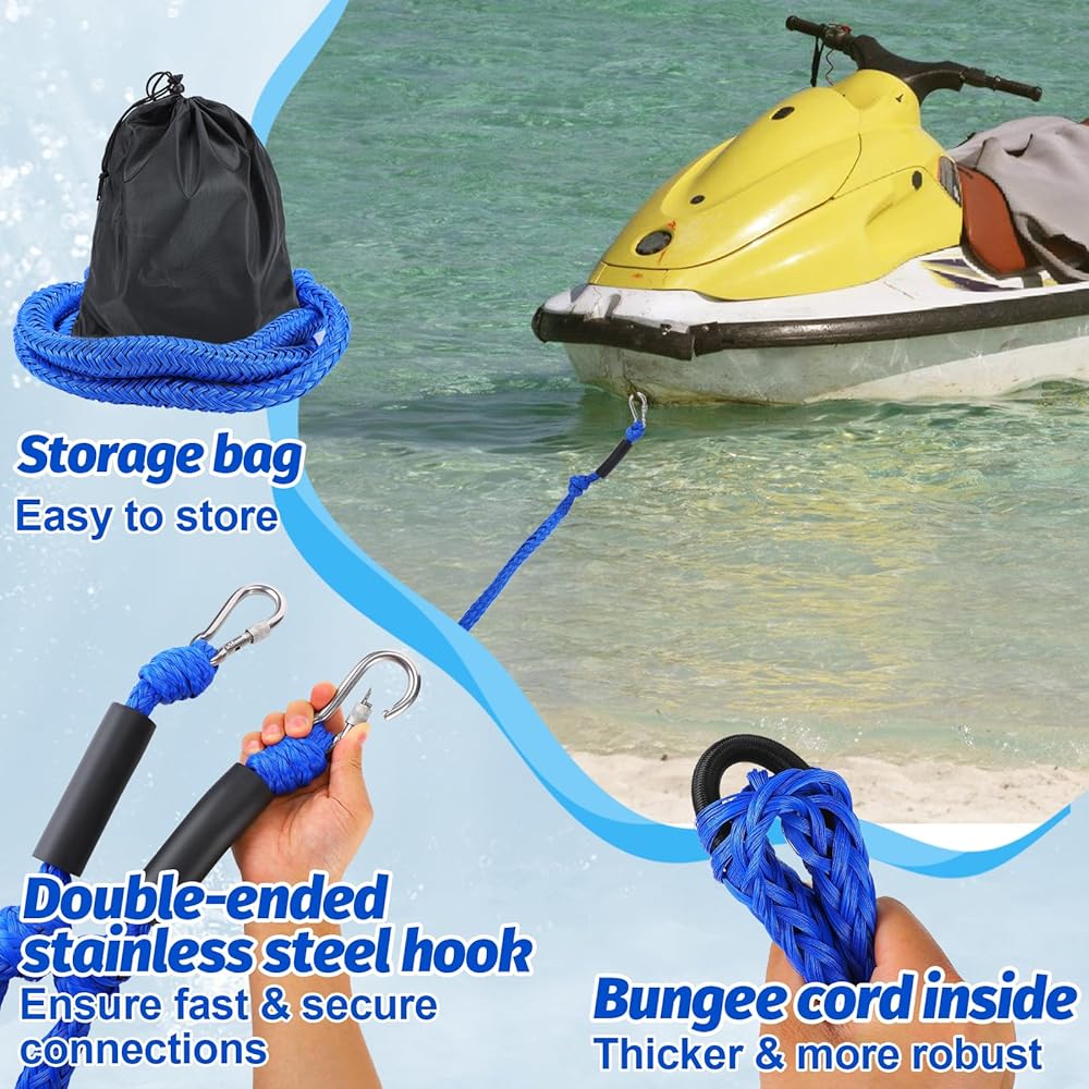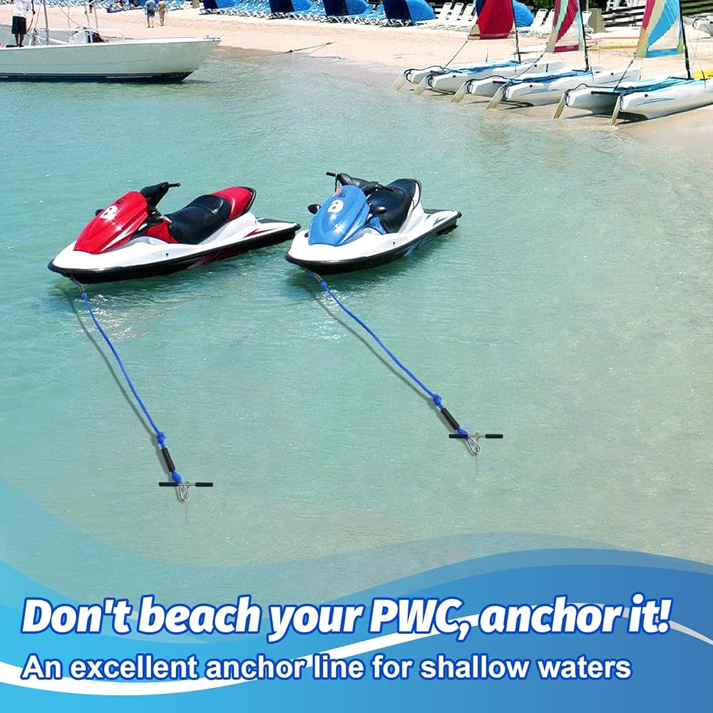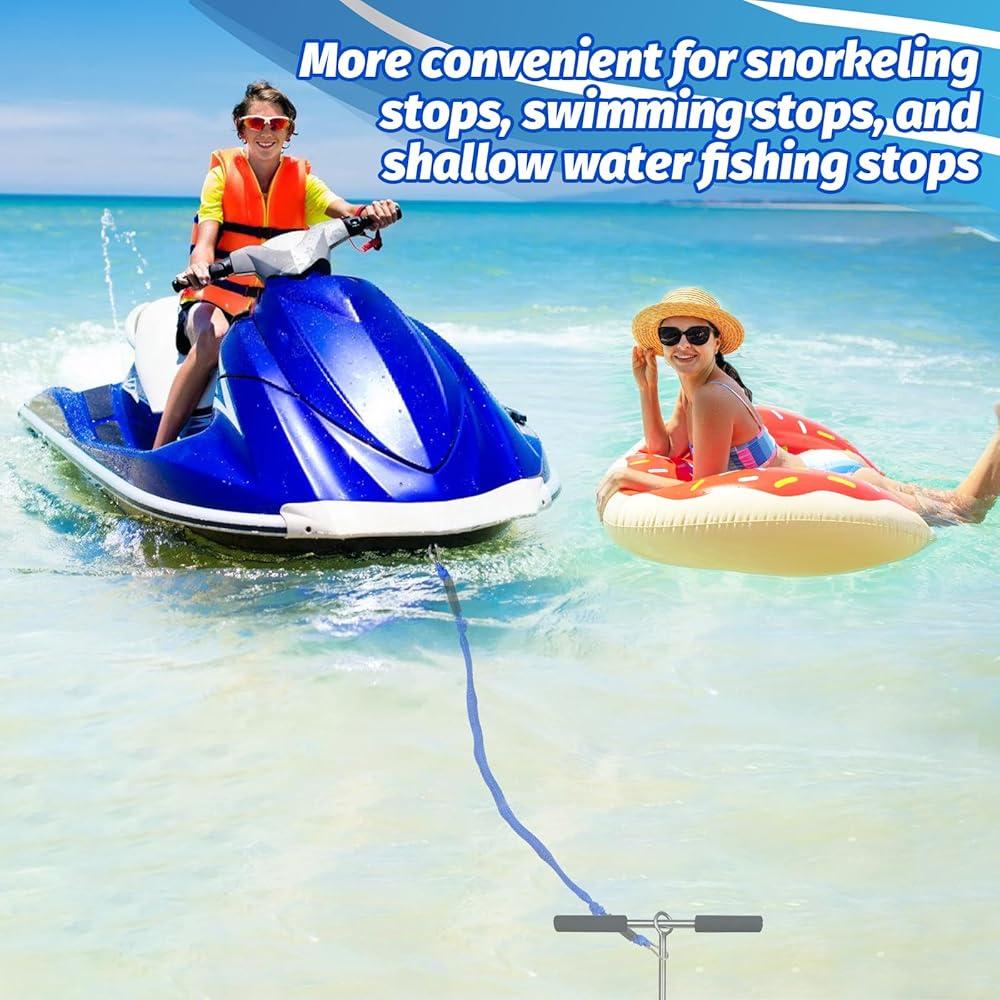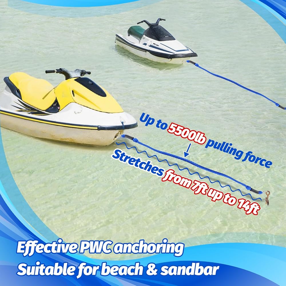 1. Our boat bungee anchor lines, ranging from 7 to 14 feet, ensure secure anchoring in deeper waters, ideal for PWCs on beaches and sandbars.